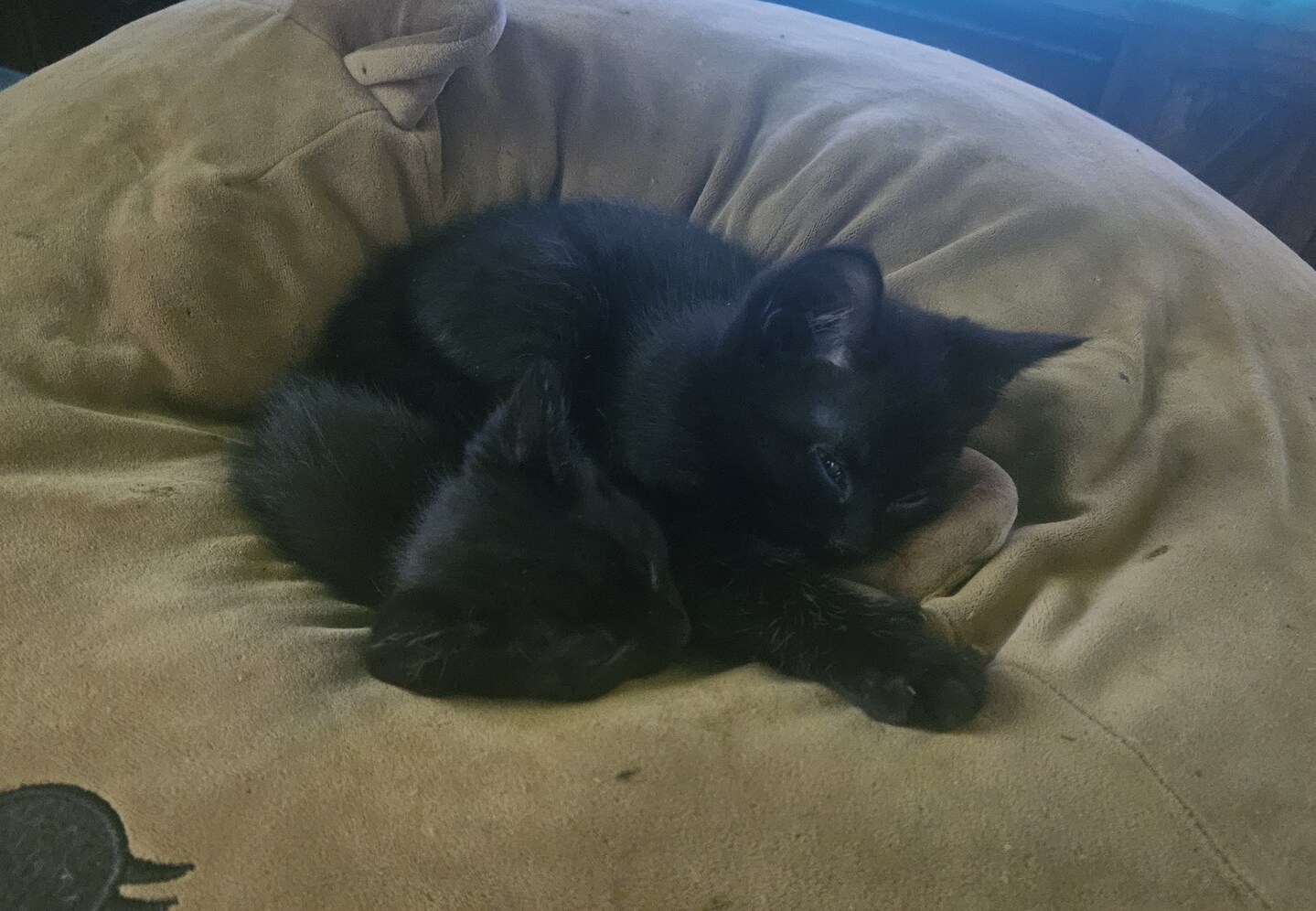 Black Kittens. 13 week old brother and sister kittens need homes. Wonderful personalities. Sweet, good natured and affectionate. Liter box trained. Eating wet and dry cat food. Hoping to rehome together but willing to seperate. Asking $50 rehoming fee for both or $30 Rehoming fee each. Text anytime. 907-414-5246.