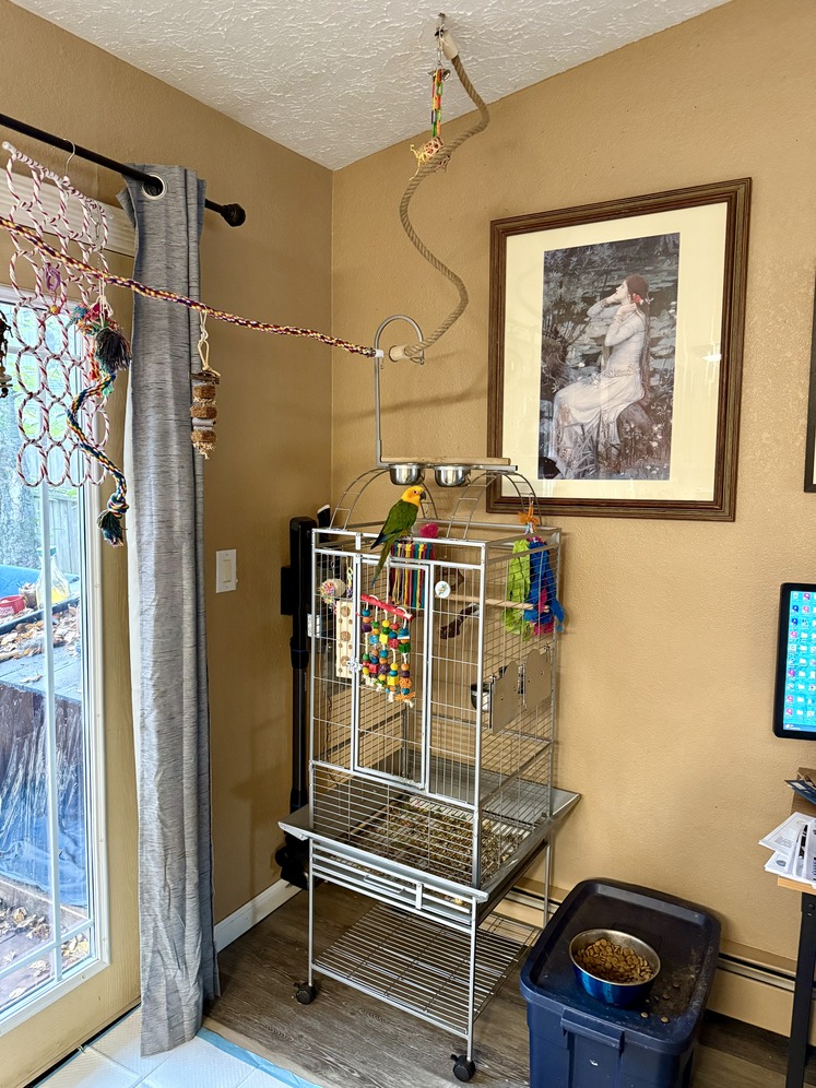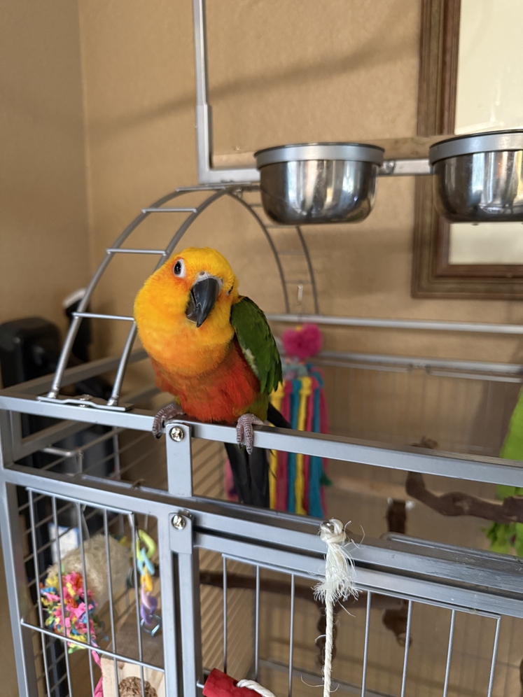 Putting my conure, Effie, up for adoption. She spent about a year in a small cage at Petco and has been with me almost a year now. She has slowly warmed up to me, but needs a lot more work. I have become very attached and hate to see her go, but she is too loud for the rest of the family. Typical Jenday/Sun conure shrieking, especially when I leave the room. It's normally just her and I home all day and she's super quiet. She would do best in a calm environment or a family who doesn't mind the shrieking. Rehoming fee is negotiable - most importantly I am trying to find her a loving home to accept her quirks. She would come with all of her things - large cage, lots of toys and food, etc. Please call or text Katrina at 907-223-3482 for more details.