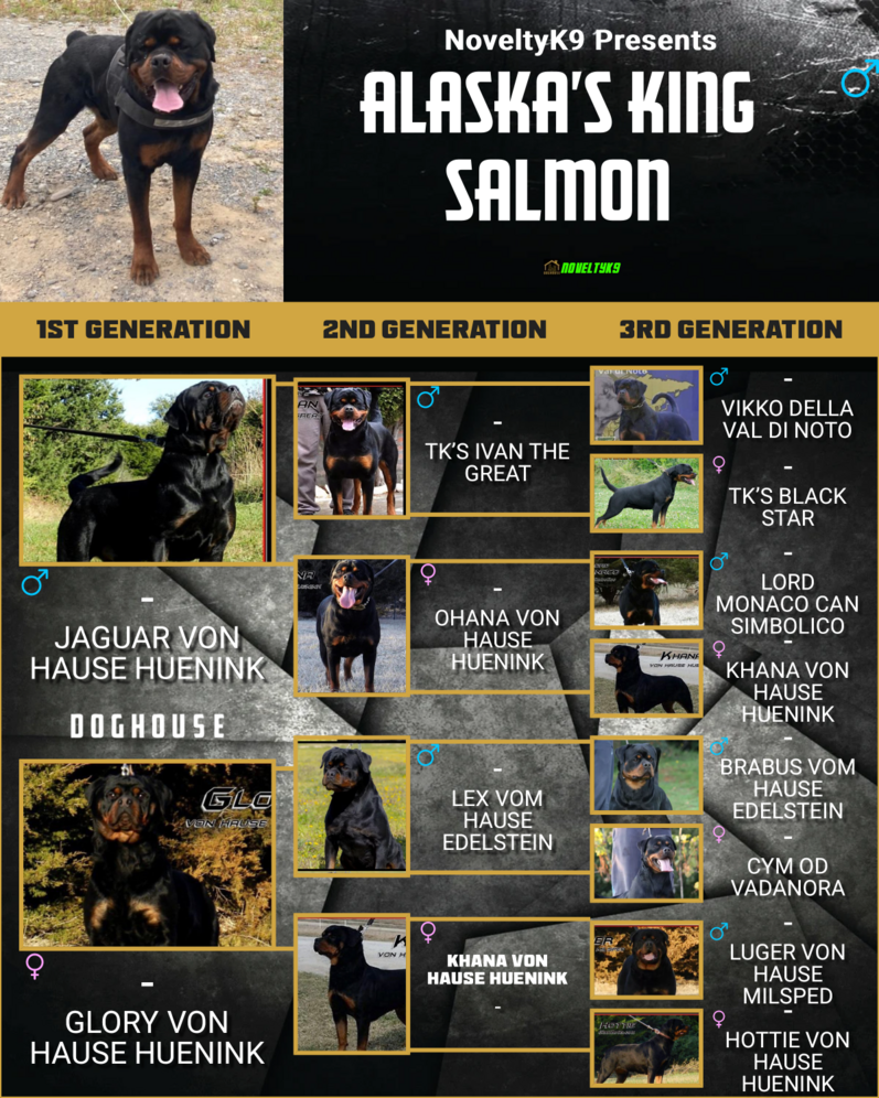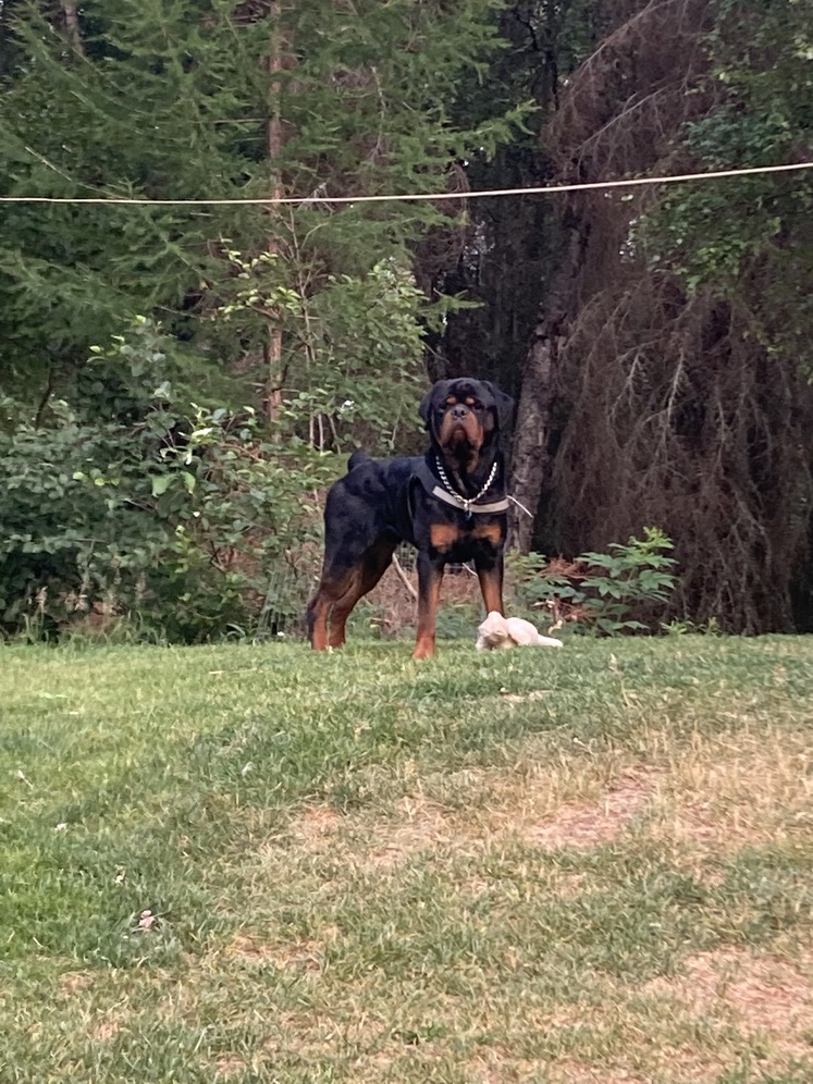 Alaska’s King Salmon is his registered name. Kimbo is his pet name. He’s very goofy at home but is very protective over me and his family. He has very good natural guarding instincts. He is 125lbs. He is very tall and beautiful with a nice large head. AKC registered, AKC parentage DNA, Embark full panel DNA, OFA hips, OFA elbows, JLPP free. Message me for more information. All breedings will be artificial insemination. Dew claw and tail docking for puppies is also included.