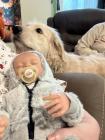 Gus is a sweetie pie bernedoodle, loves to snuggle and play. He's 75% poodle, 25% Bernese mountain dog, non shedding, and about 35 lbs. He's one year old, and we've had him from 8 weeks old. He's neutered, has all his shots, and is potty trained, knows, sit, st ...