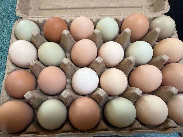 Hatched out chicks from flock of Barred Rocks, Rhode Island Red, Black Austorlorps, Buffs, Easter Eggers. They were hatched 3/10. they are feathered out and are in the chicken coop. They were hatched from our chickens that layed all winter. Good genetics for your flock.