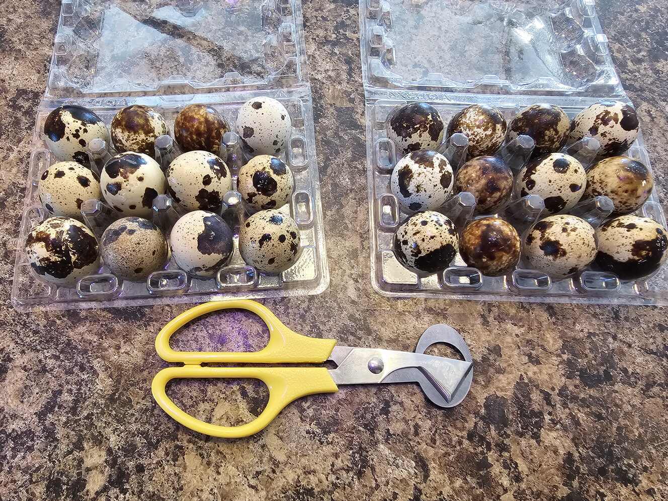 Fresh daily, unwashed Jumbo Coturnix Quail Eggs. $5 per dozen (discount for more then 2 dozen). If you need scissors we have them for $2.50 each.