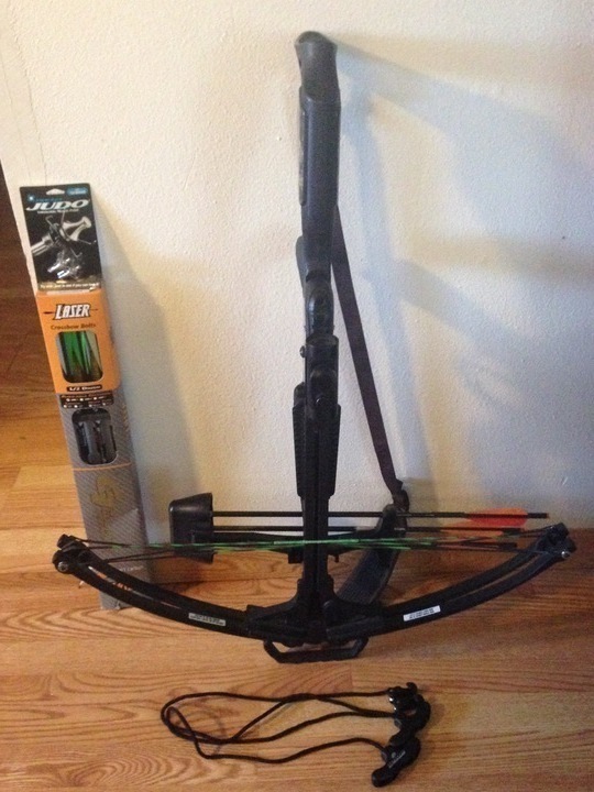 Barnett Jackal Crossbow with new bolts/judo heads/draw assist. $250 (firm). Text for more info.