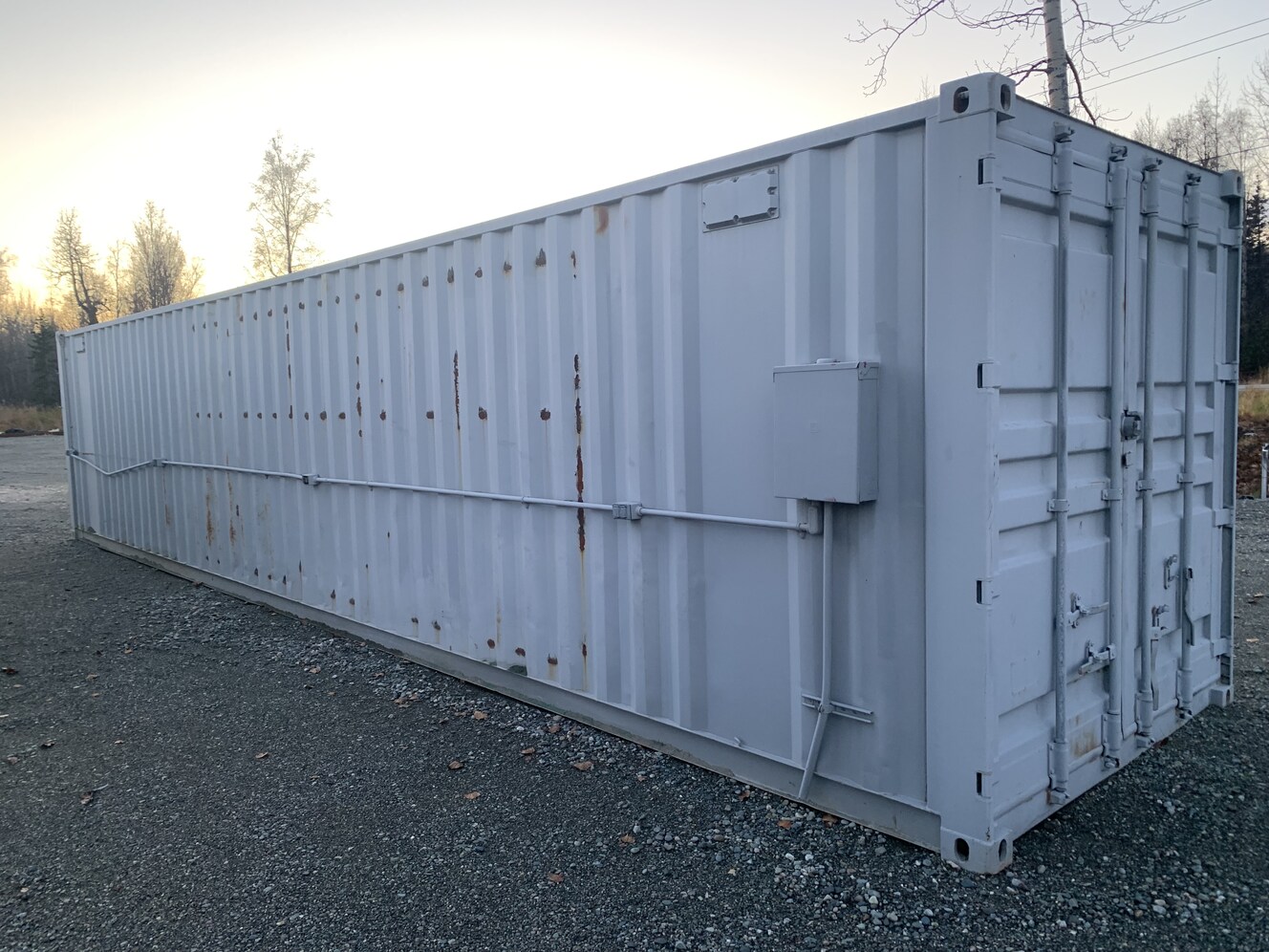 I have 2 each 40' Connex's for sale, each has added storage hooks for tools/materials and lighting/plugs through out container. One container has an electric panel on exterior piped to lighting and a built in pipe rack on interior priced at 5200. Second connex is priced at 3400. Front doors are worn but everything still closes and locks up.
