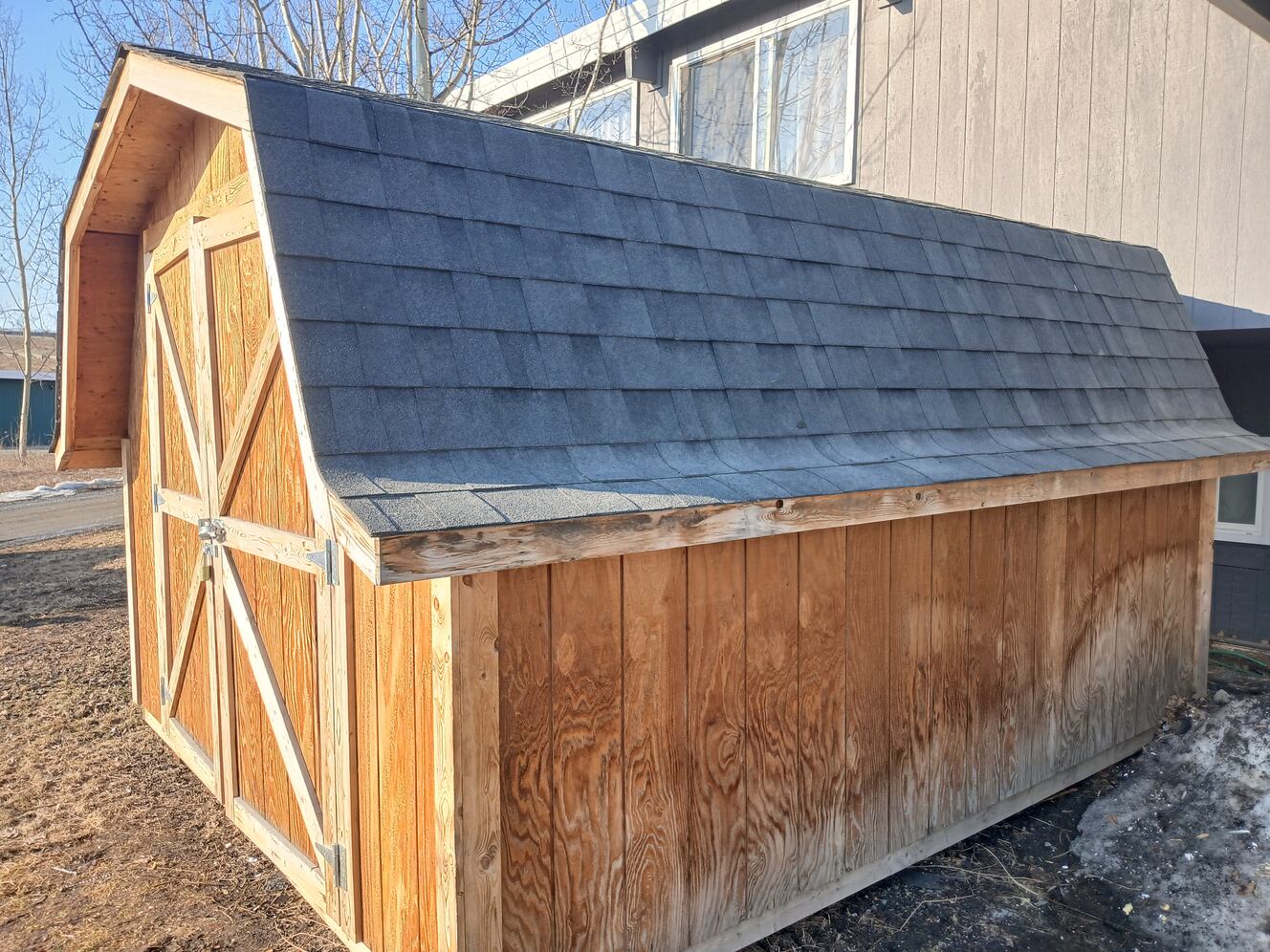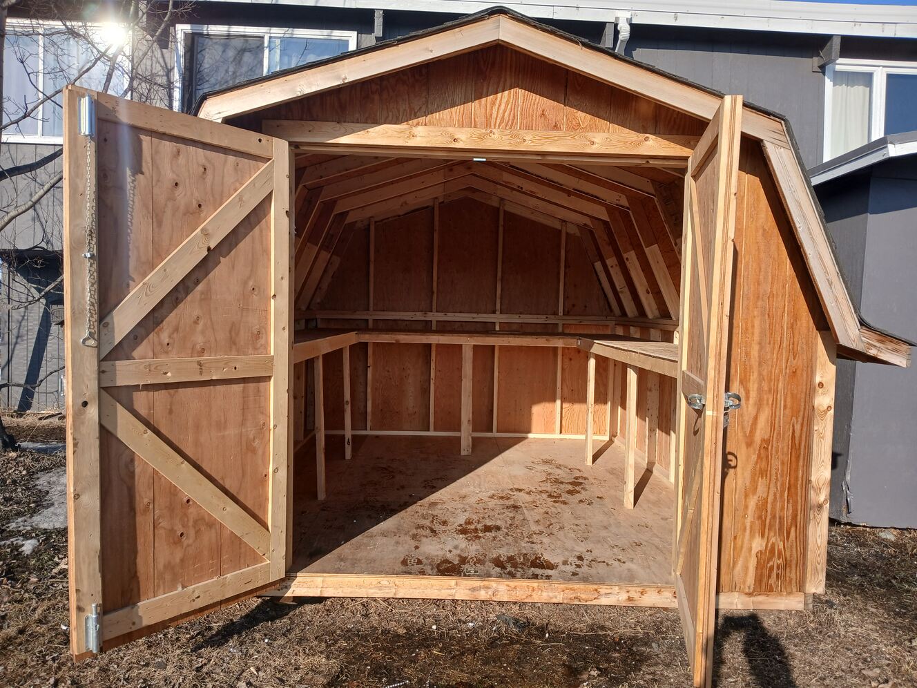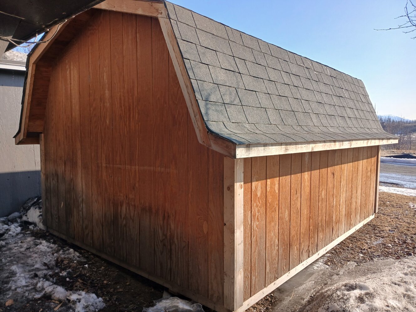 The shed is used in excellent condition with shelving added. Dimensions are 12 ft 3 in by 10 ft 3 in. Buyer needs to arrange to move it. We had a good experience with Happy Hooker Towing. It is located close to the Matsu Regional Hospital.
