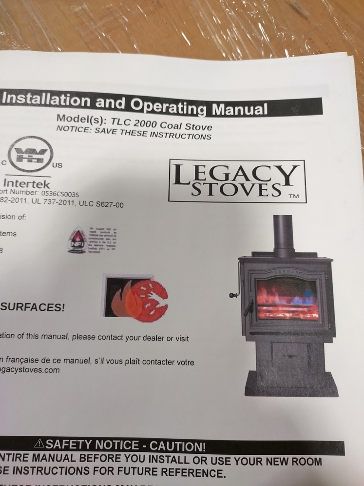 New Legacy tlc2000 coal stove. This is a top loader model. It was brought up from the states.
