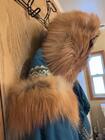 Arctic Fox Fur Hat(Fairbanks, Alaska)picGenuine white Arctic Fox fur hat with tail and paws. Blue corduroy exterior fabric. Handmade and exceptionally war ...