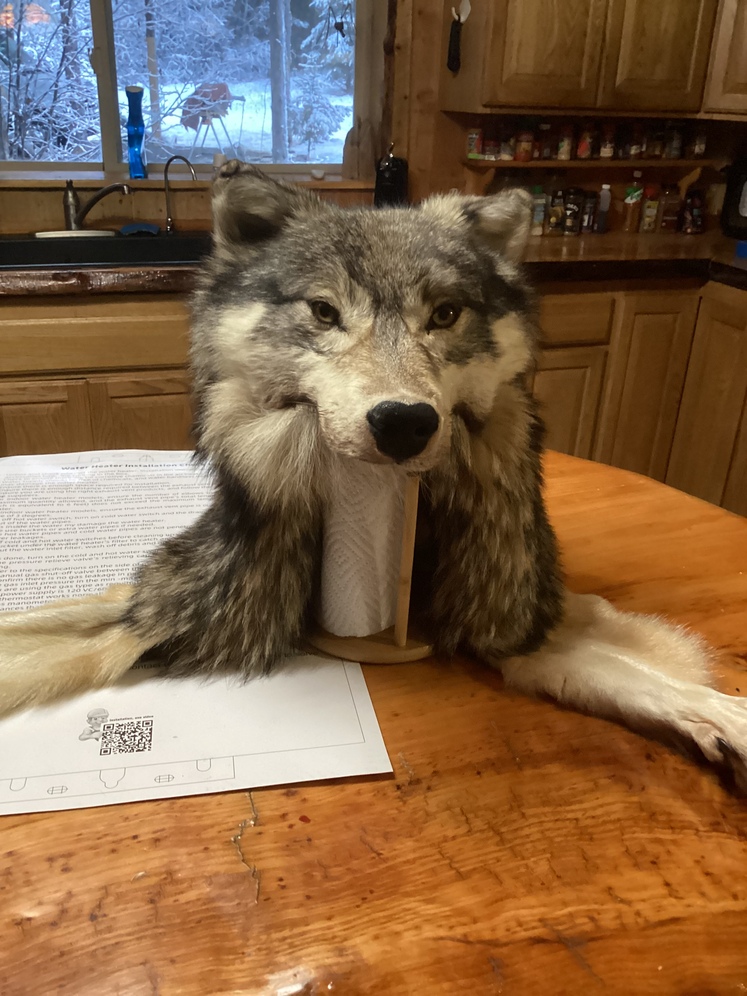 Was bought for me as a gift from the Fur Gallery in Anchorage. Though appreciated, I have a pack of 7 wolves that frequently come by that I love. Thinkin it’s blasphemous Lol