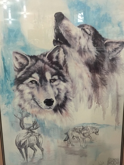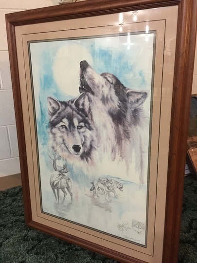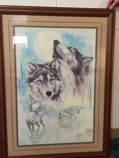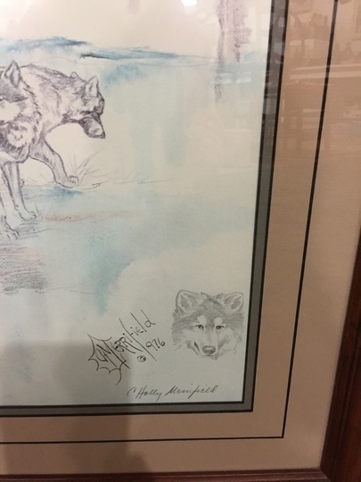 Strikingly Beautiful! 1976 "Wolf" Water Color by C Holly Merrifield #173/950. Professionally framed and double matted. Framed Dimensions: 3'1.5 x 27.5" Framed by: The Gallery, Palmer AK