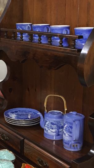 Collectable Currier and Ives in Excellent condition! 4 coffee mugs "Winter Homestead", matching Coffee Pot, and Cider Warmer. 4 Dessert 6" collectable plates. Very nice set!