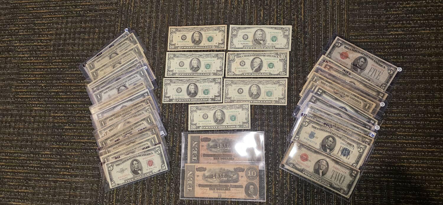 US Currency Bills and Coins. Currency lot of old bills and coins, dm me for more