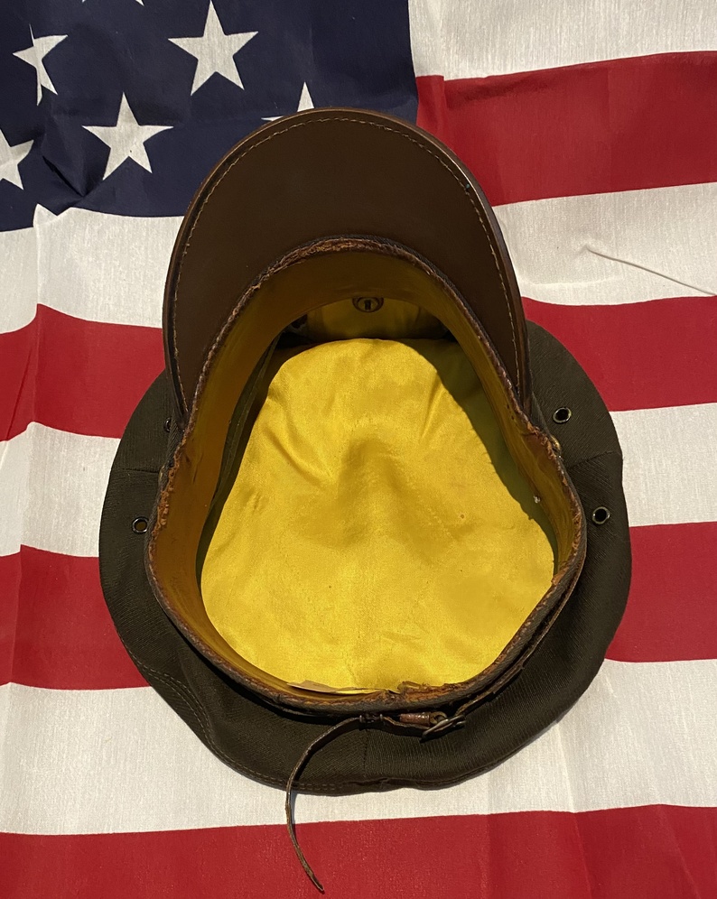Very Good+ WW2 era USAAF crusher cap. These caps were worn by American officers in the Army Air Force, including bomber pilots and air crews.