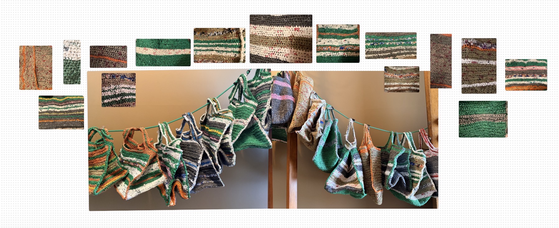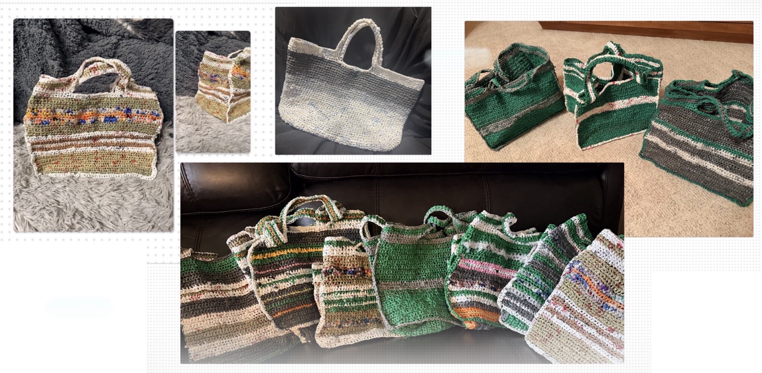 These may be against the law in Anchorage, BUT… 100% legal when used this way, as well as, surprisingly soft, while stubbornly strong, sturdy, reliable and reusable, plus - waterproof! It’s the smarter solution showing supreme style. They are handmade in the USA. Each one is uniquely one-of-a-kind and takes a couple days to make because we believe quality counts and is not compromised! Right now, we are featuring the colors green, orange and beige. Patterns are random, and sizes are not exact, it all depends on the recycled material, but pictures show results of final products. So, help the environment and never settle for anything other than the best, use BUTLER BAGS for all your shopping needs, camping trips and holiday goodies!