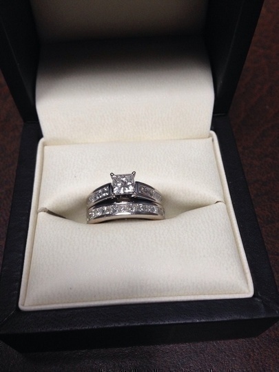 Like new! Worn for 2-3 months. 14kt white gold. Size 4.5 but can be resized. Center diamond is 0.67 ct with 27 princess cut diamonds surrounding. Total weight is 1.91ct. Purchased from Kay Jewelers in Hawaii for over $6000. Asking $2500. Local and cash only please