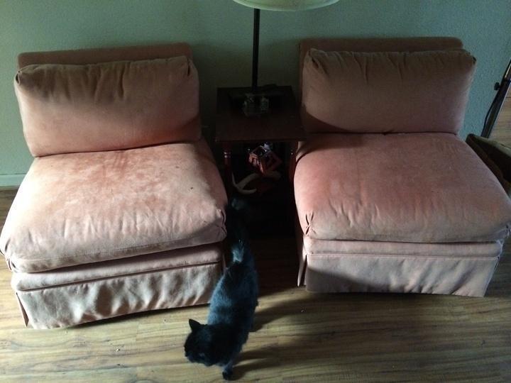 Set of 2 Chairs Could Use As Loveseat. These are light weight and comfy! Pushed together you can use as a love seat. Kind of a salmon color. Smoke free home. I will update the photos as it almost looks like they are dirty but they're not, just heads up ;) Asking 150 or best offer! Call or text.