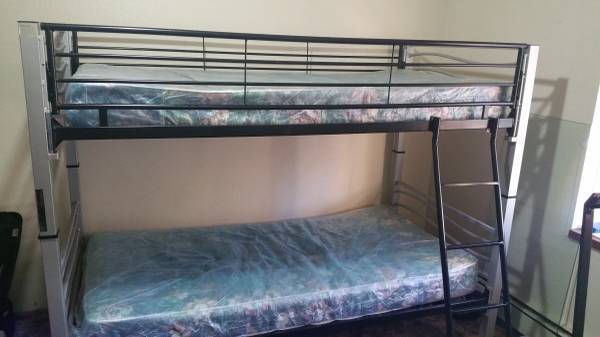 Great condition school-aged children bunk bed for sale at great price. This includes the bunk bed frame and 2 twin size mattresses, which are still in plastic cover. Must go asap. You haul and we can assist you in loading furniture into your truck. Serious inquiries only.