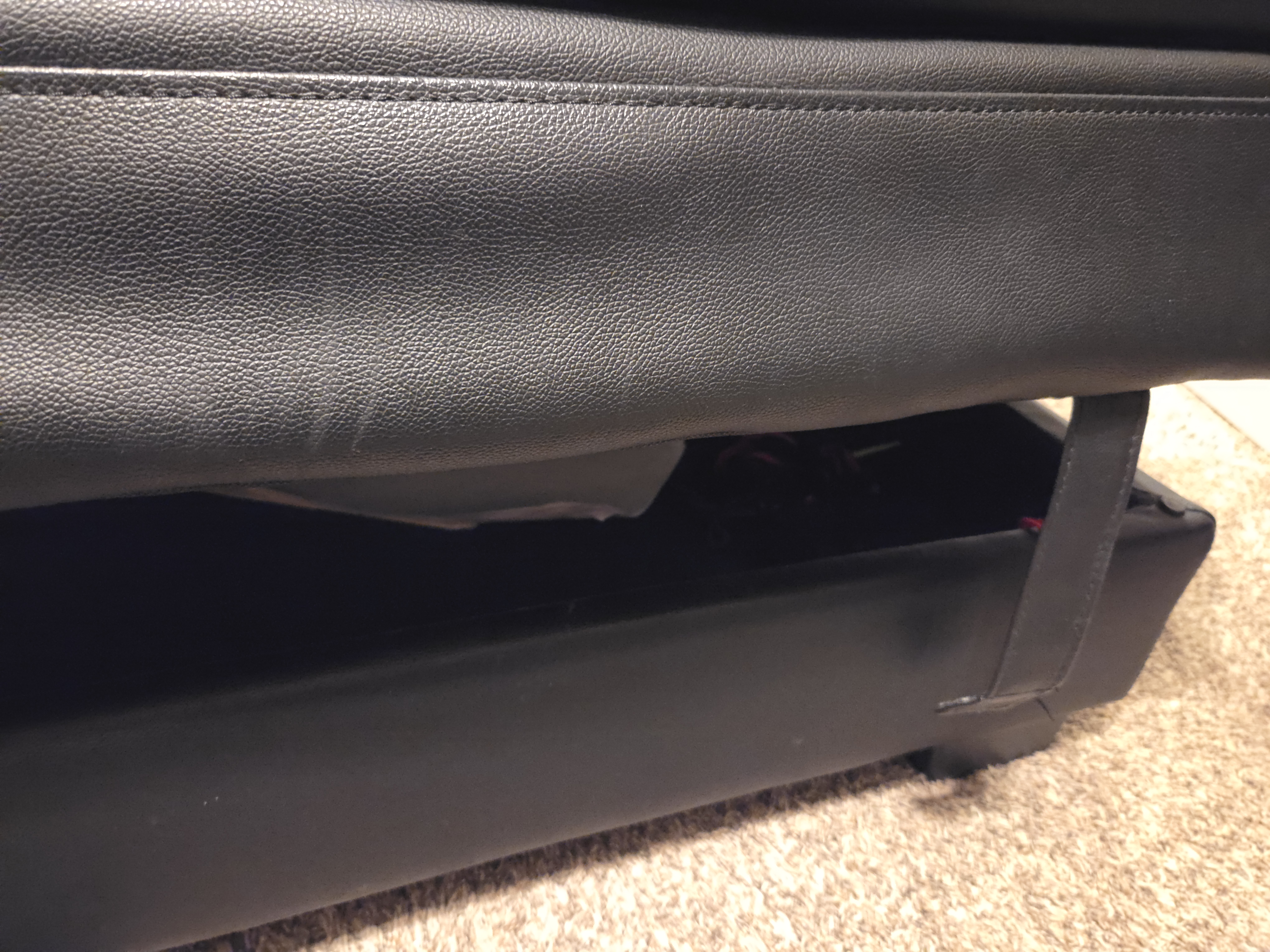Nice black Click N Clack Leather Couch with bottom storage. It is in excellent condition and has both USB & DC plug ins (electrical). Folds out into a bed for extra company AND/ OR great for home office. Dimensions: 30" H x 72" L x 33" W Asking price is $225.00 NO Cashiers Checks Please