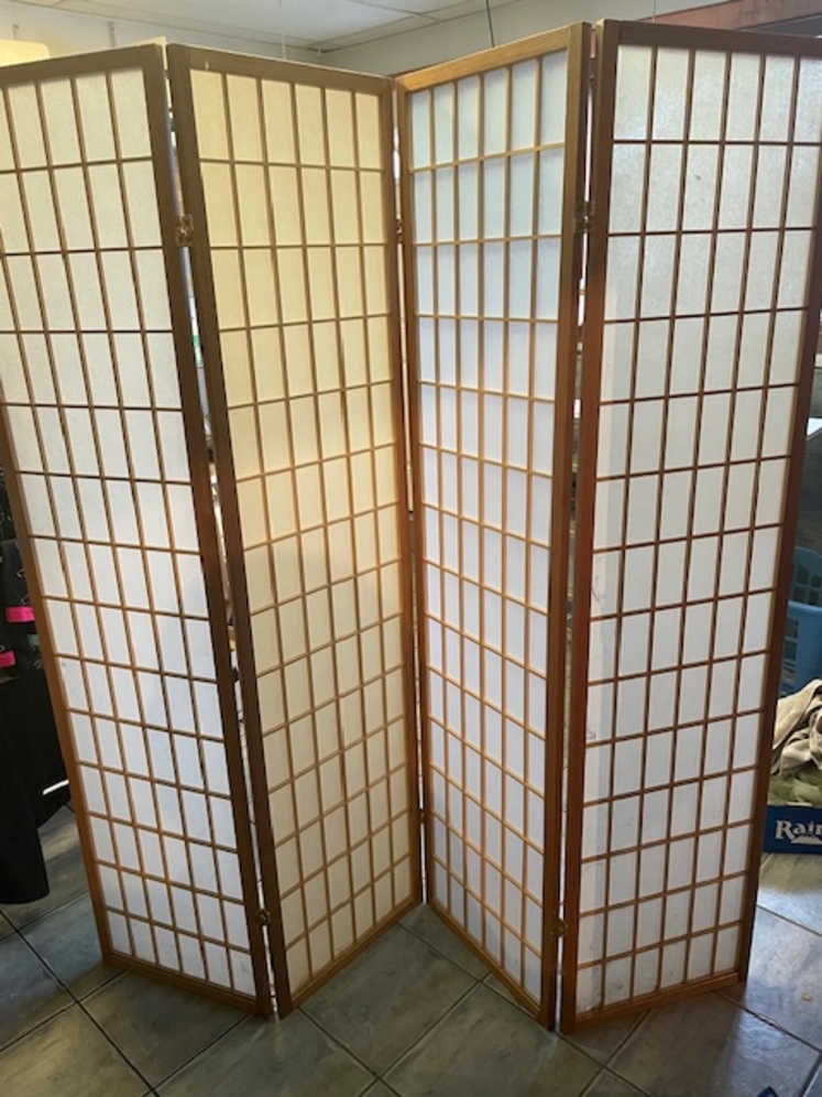 Room Divider, privacy screen. This classic 4 panel design of natural color cotton material is70" tall and 68" wide. No assembly required.
