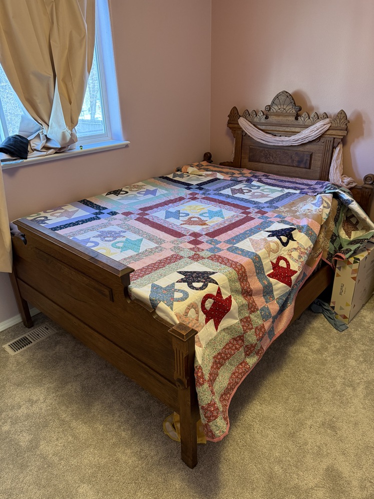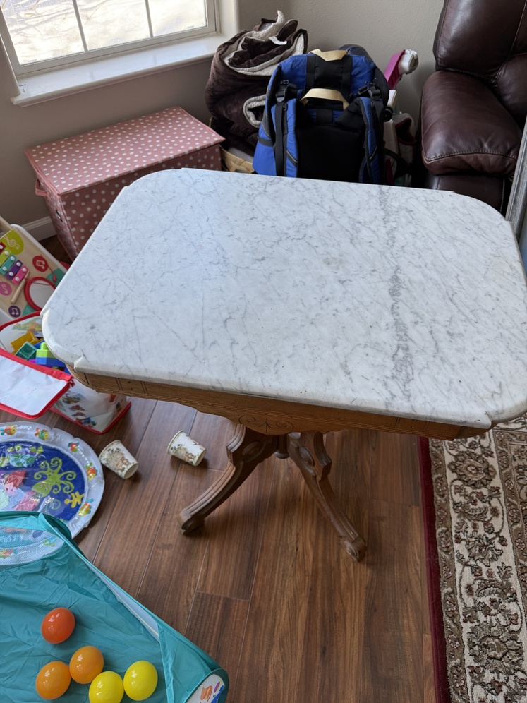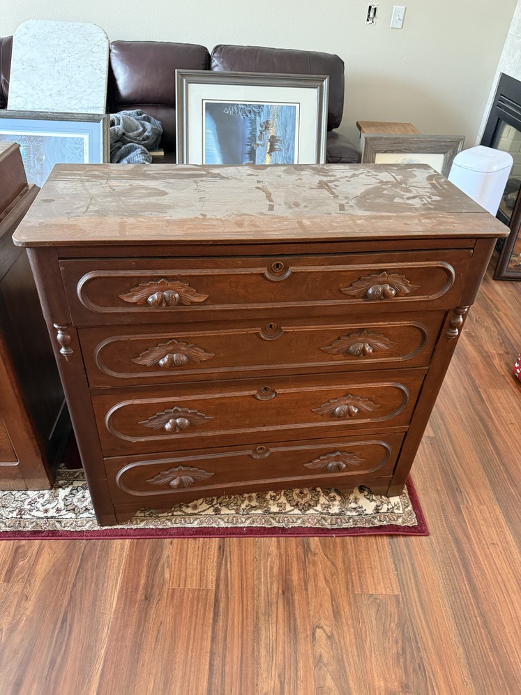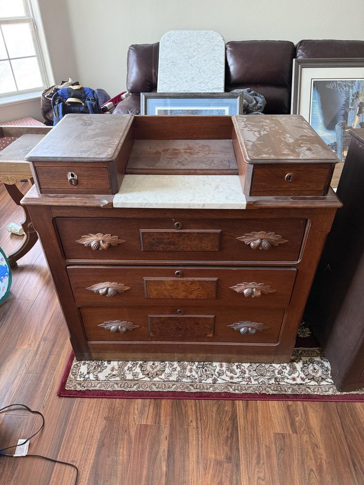 Antique Bedroom Set from early 1900’s. Five pieces include bed frame, vanity, dresser, nightstand, mirror. Selling as a set including custom mattress and box spring. Condition is…well it’s over 100 years old. It could use some work if you wanted to or you can also just use it. Construction is hardwood and marble.