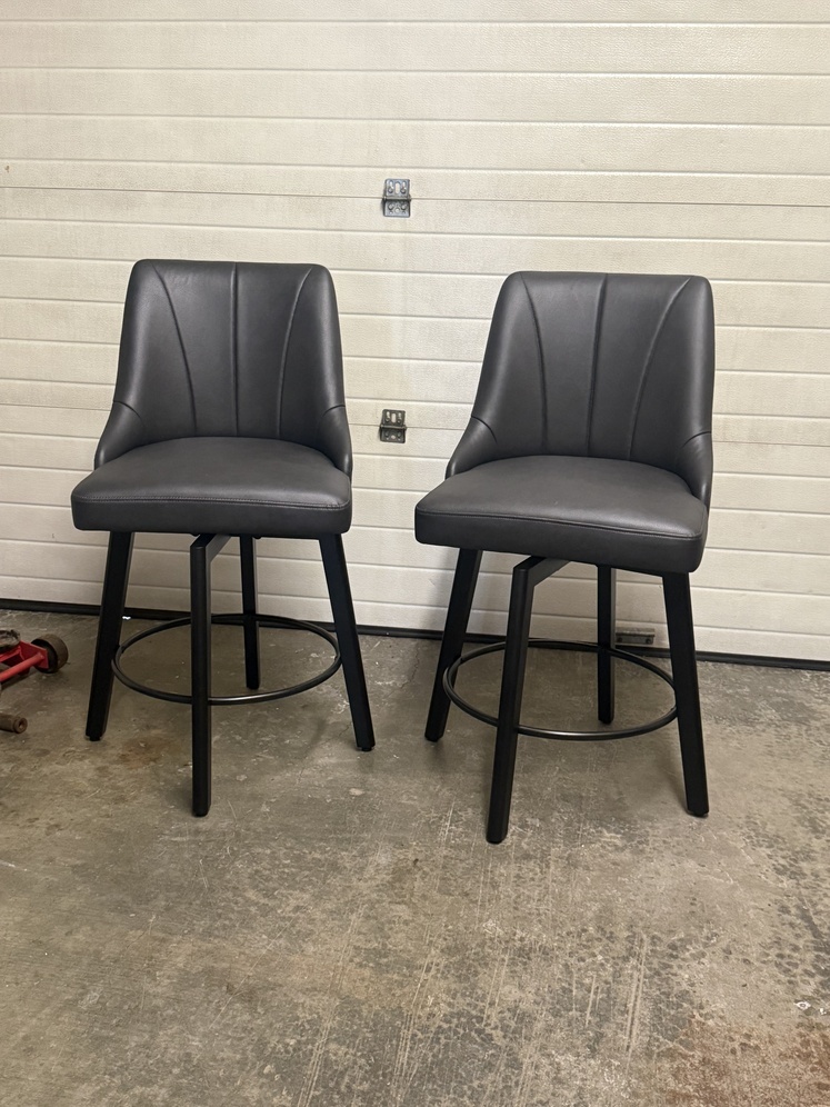 Beautiful Black Faux Leather Swiveling Chairs . These are Brand new , classy Comfortable faux leather Swiveling bar stools that are 24 inches from floor to seat