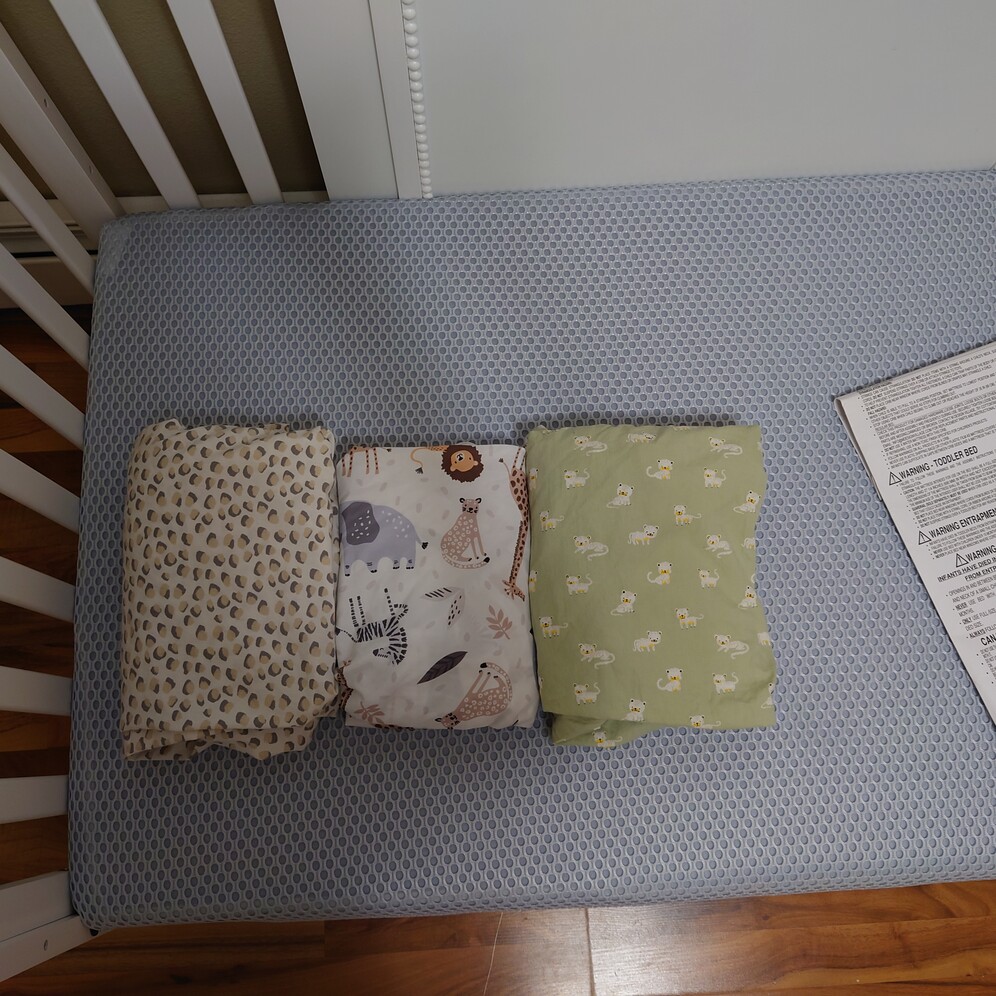 Oxford 4 in 1 convertible Crib in white and Baby Bed Crib Mattress with removable/ machine washable cover in blue comes with 3 Baby crib sheets and instructions. The Baby crib has never been used because of co-sleeping.