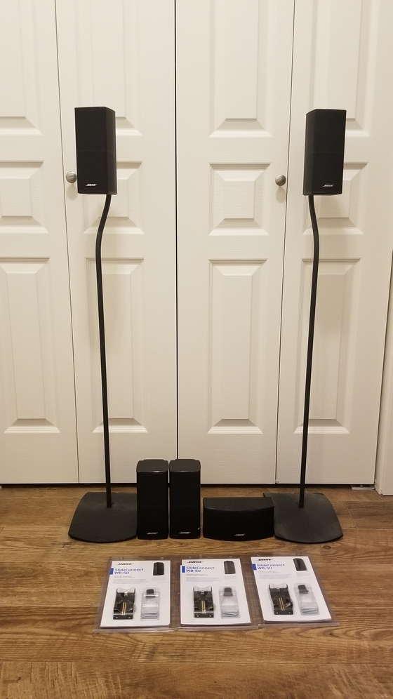 5 Bose Direct Reflecting Series II Speakers (book shelf style) all in working order. 1 speaker has cosmetic damage from the 2018 earthquake. $250 value on 2 x UFS-20 Series II universal floor stands -$119 value 3 x Bose Slide Connect WB-50 speaker mounts $89.64 value $458 value Asking $350 cash Sold as a group only and as is condition. Pick up Sand Lake only Cash only