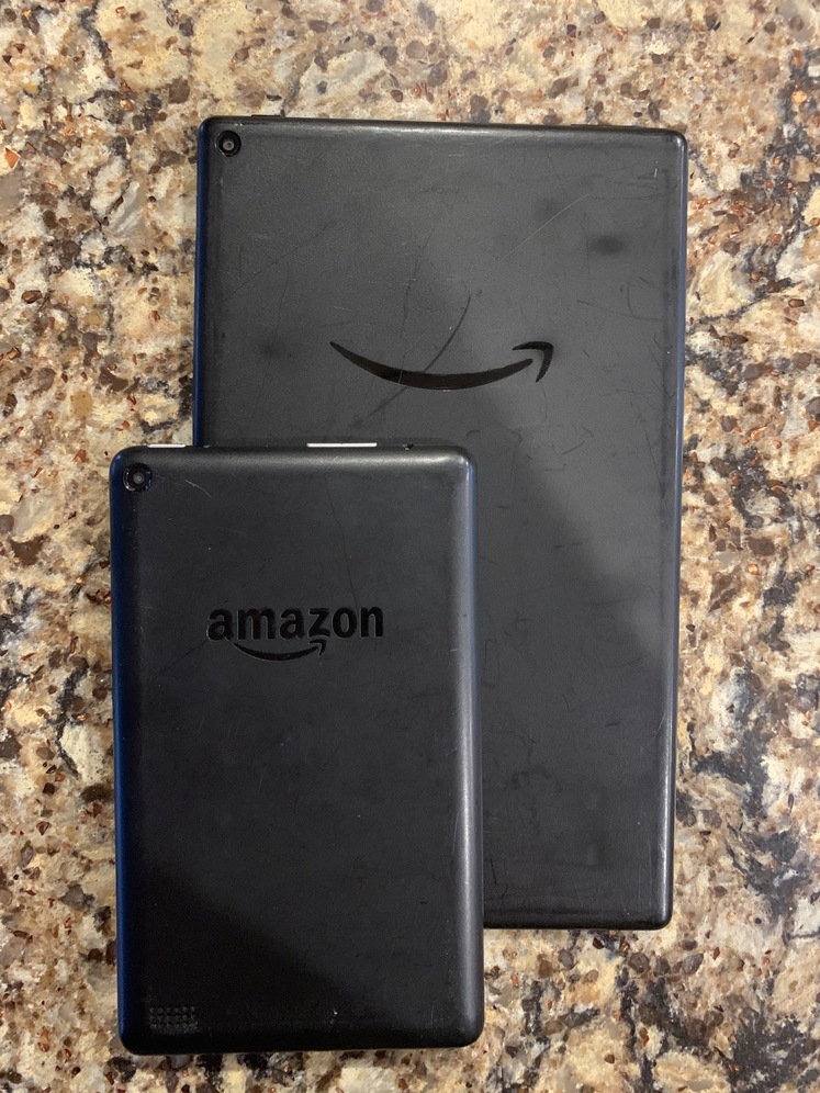 2 amazon tablets. Both factory reset and works perfectly. The only problem is the superficial crack on the larger one and the small one has some minor scratches. I am not sure what model the large one is. I do know that the smaller one is a Kindle. $35 OBO