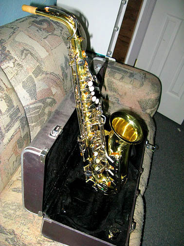 Brown, standard saxophone case, (PIC SHOWS SAXOPHONE BUT I'M JUST SELLING THE CASE). Latches work, good condition.