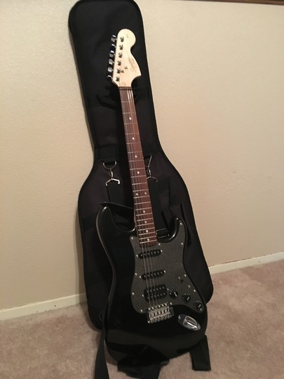 Brand new. It is a fender squier strat. Payed $560 for it the travel case, and strap. Asking for $300