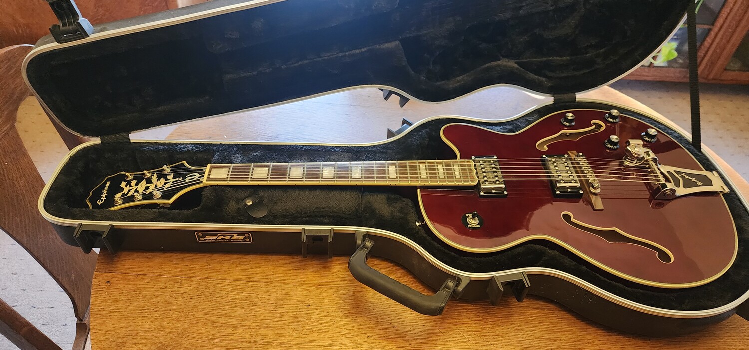 Epiphone Emperor Swingster Wine Red guitar with hard case