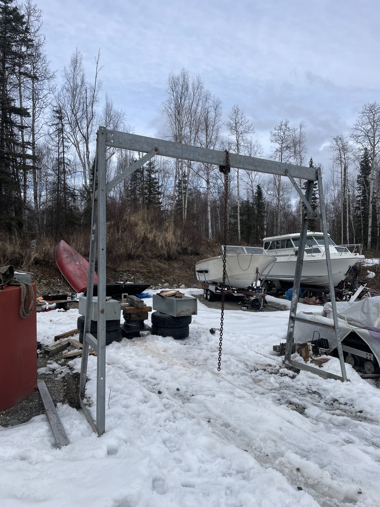 Overhead hoist 8’ high X 9’ wide Can park pickup under it Used it a lot because it was in front of garage door