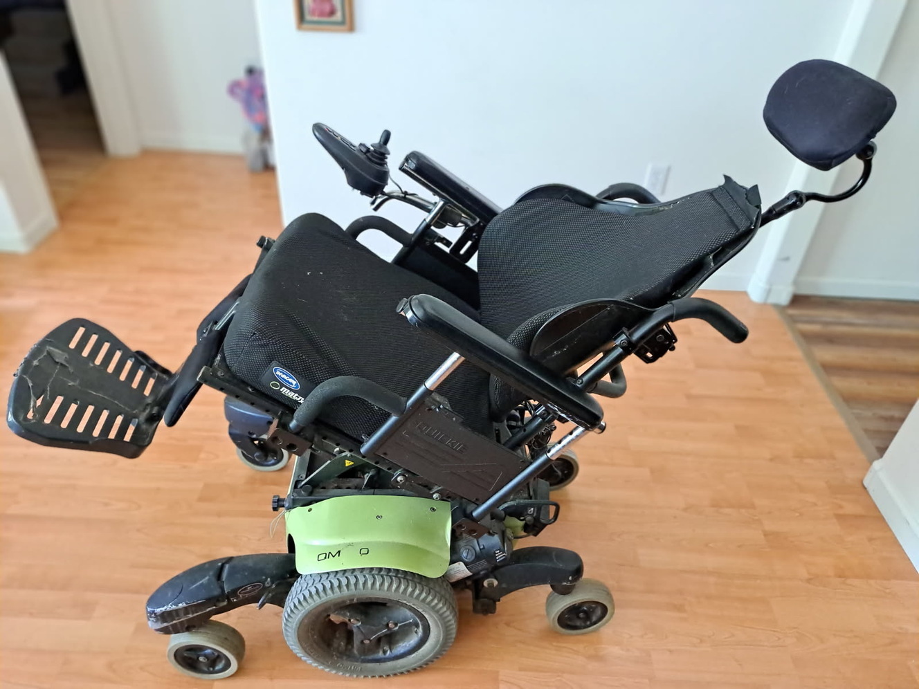 Used in good condition $750 Reclining Flat Resistant Tires Joystick Adjustable Height QuickRelease Axes Air Seat Cushion Swing Away Legrest Adjustable Footrests Elevating Legrest Foam Filled Tires Padded Armrest Flip Up Armrests