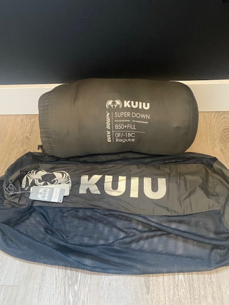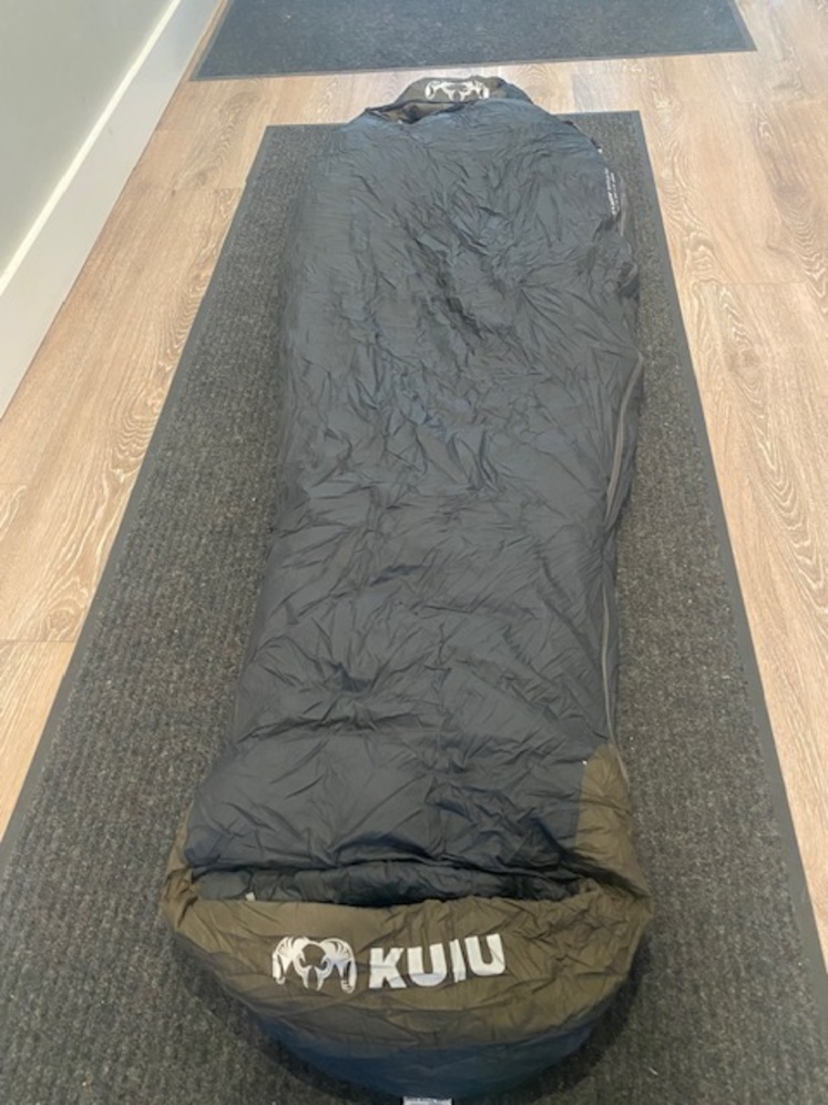 Kuiu Super Down Altai 0 degree Sleeping bag. Ash color. Used for a 3-day hunt so basically brand new. 799.00 new and I'm willing to negotiate.