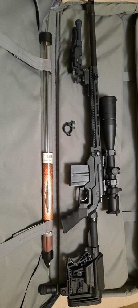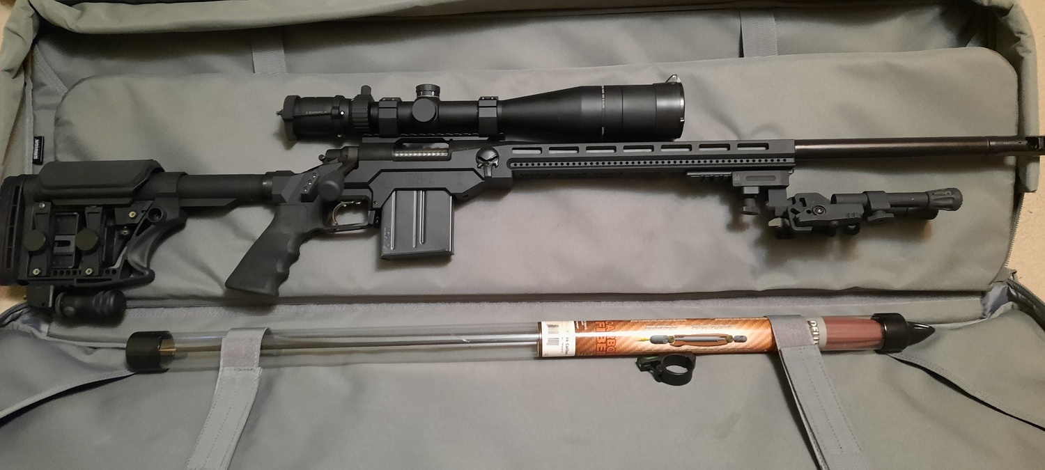 Remington 700 .308 22" heavy barreled action with Surefire ProComp muzzle break, Leupold Mark 3 HD 8-24x50 with bubble level,100 Concepts ruggedized cap and Butler Creek flip up front cap, mounted in Seekins 30mm scope mount on a Seekins base, mounted in S2Delta RS-C chassis w/arca rail bottom and GG&G XDS-2 bipod, Luth-AR MBA-3 buttstock, Hogue overmolded grip, AccuShot precision rail mount adjustable monopod. Comes with 3-MDT steel 10 rnd magazines and 1 PMag 5rnd magazine, Tipton carbon fiber cleaning rod and Savior case. Around $2500 invested with 60 rnds through it. Like new. I am leaving Alaska later this year and am trying to minimize what I am taking with me due to driving through Canada. I am shipping the rest.