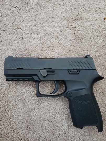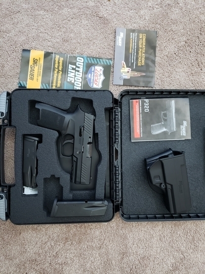 Like new .40 sig p320 carry model. Includes original case, 2 13 rd magazines, owb holster, owners manual, and 100 rounds of ammunition. I've put 200ish rounds through this weapon and enjoy shooting it, but want to move to something easier to conceal. Asking $450.00 obo. Buyer must show government issued i.d. and sign a bill of sale. E-mail/text is the best way to communicate.