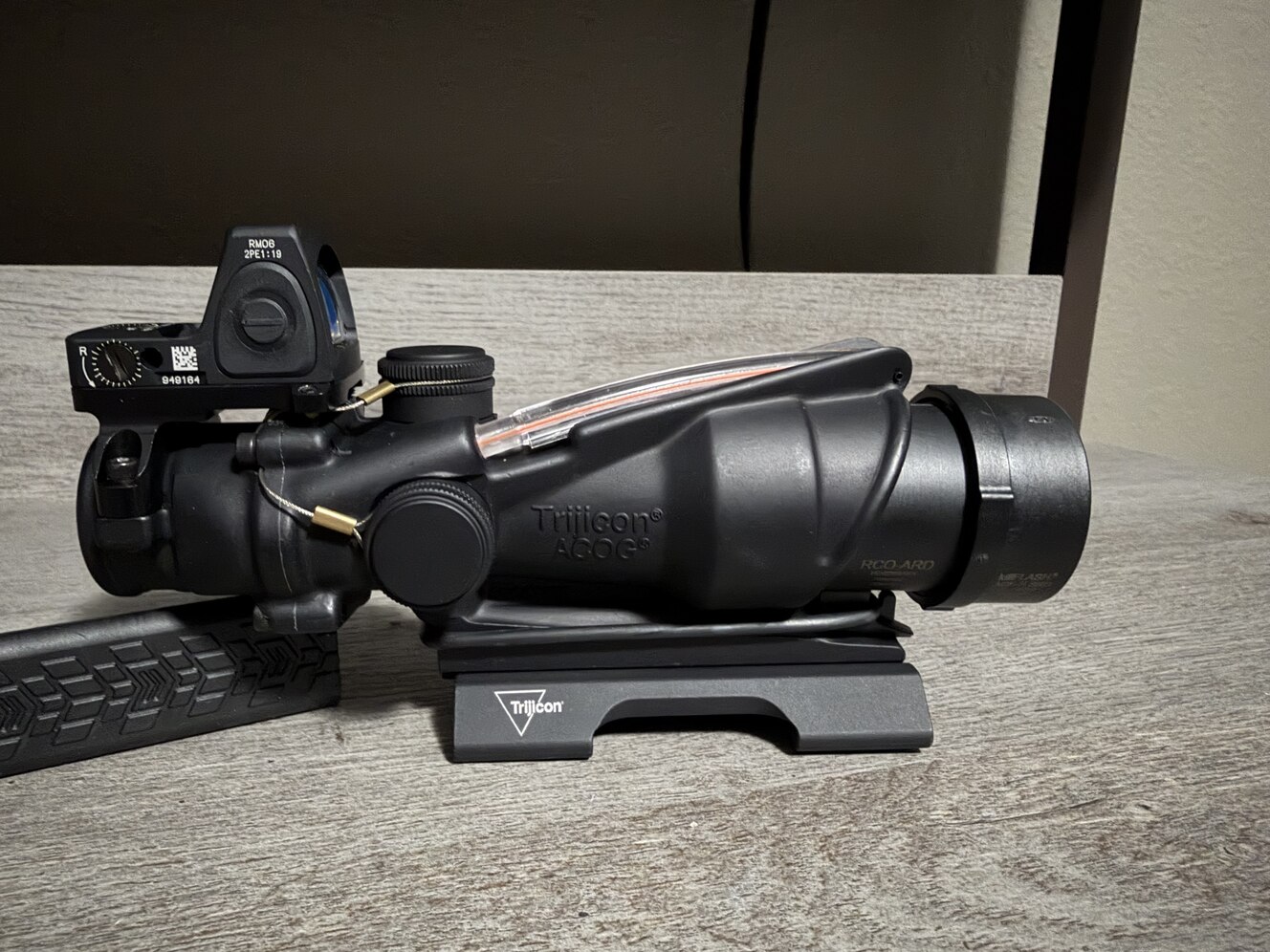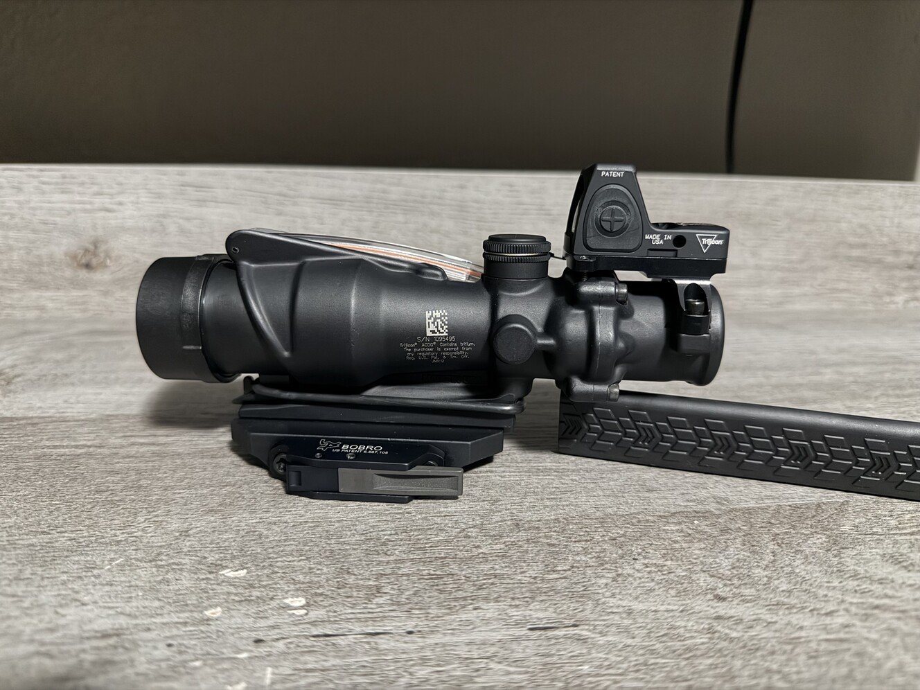 Brand new ACOG with piggybacked RMR in a Bobro QD mount. Also has anti glare honeycomb. Optics have only been mounted. $1,500