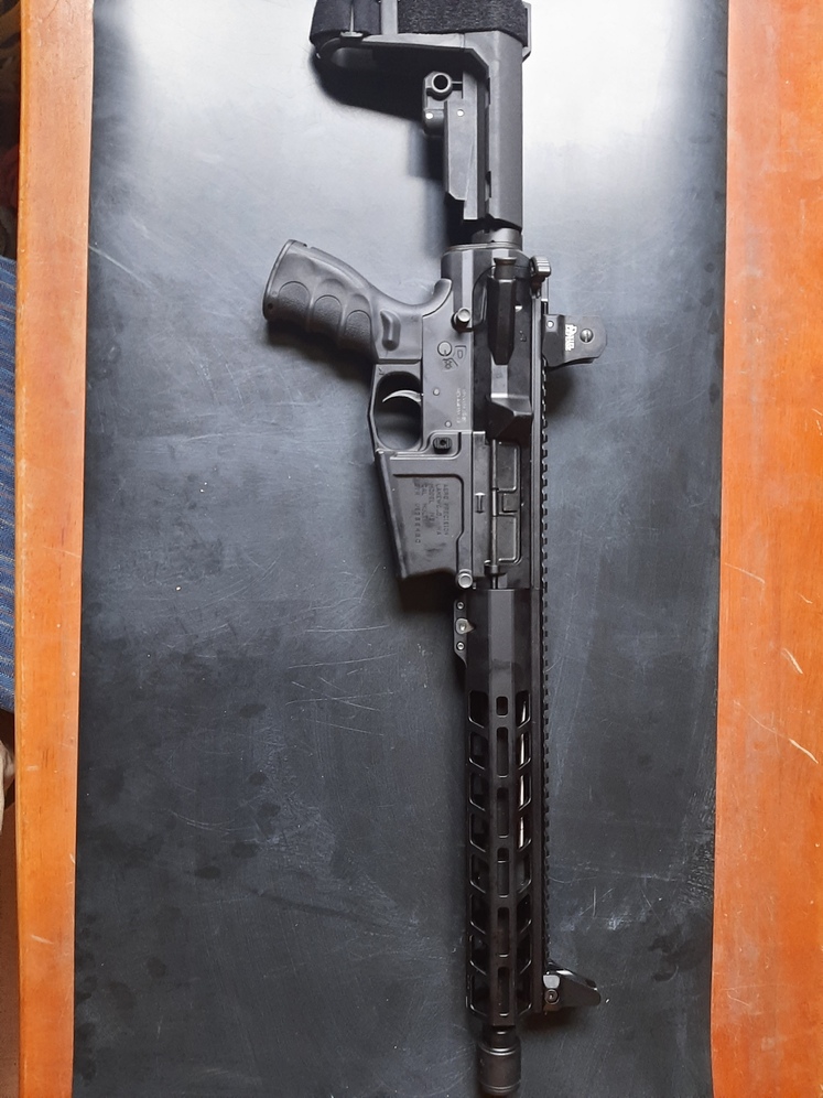 Aero Precicion .308 Pistol. 12" Barrel, adjustable brace, Daniel Defense iron sights. Built by Kenneth Owen of Owen Precision in New Albany, MS. I purchased this pistol as an investment directly from Owen Precision. I have never fired it. My wife says it's time to make room in the fun safe... I mean gun safe, before I buy any more guns.