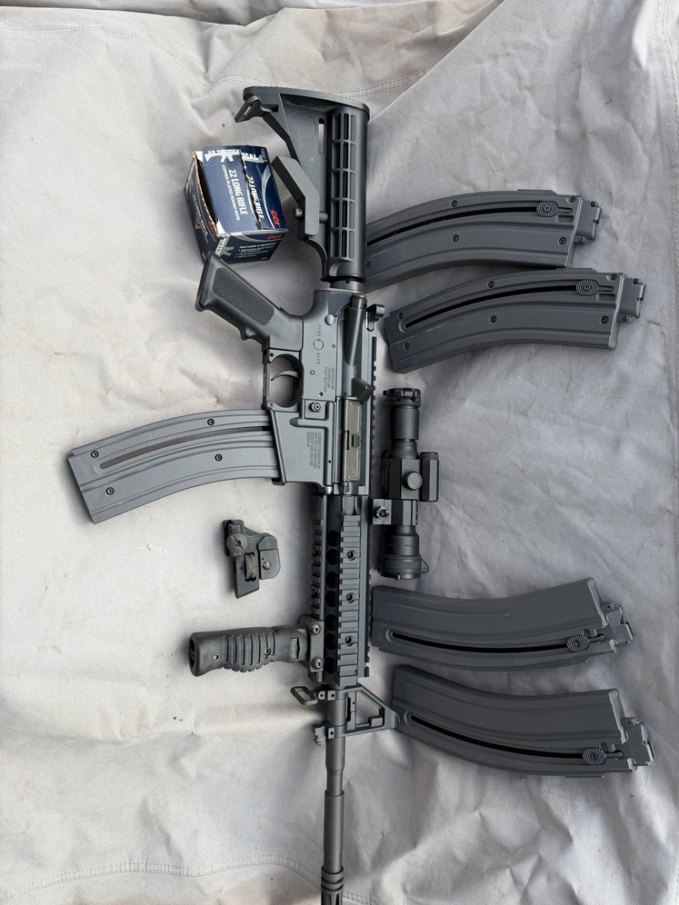AR style rimfire rifle sports a standard AR-15 look and is modeled after the legendary original Colt M4. A "Tactical Rimfire" rifle, the M4 OPS is an upgraded version of the .22 M4 Carbine. Instead of the standard forearm found on the carbine, the OPS has an RIS (Rail Interface System) that provides tactical rails on four sides, allowing for you to mount a variety of accessories. Umarex Colt M4 OPS Semi Automatic Carbine. Comes with Vortex Strike Fire Optic (red or green illuminated reticle), factory long range adjustable sight, 5 high capacity magazines and a nice range bag: