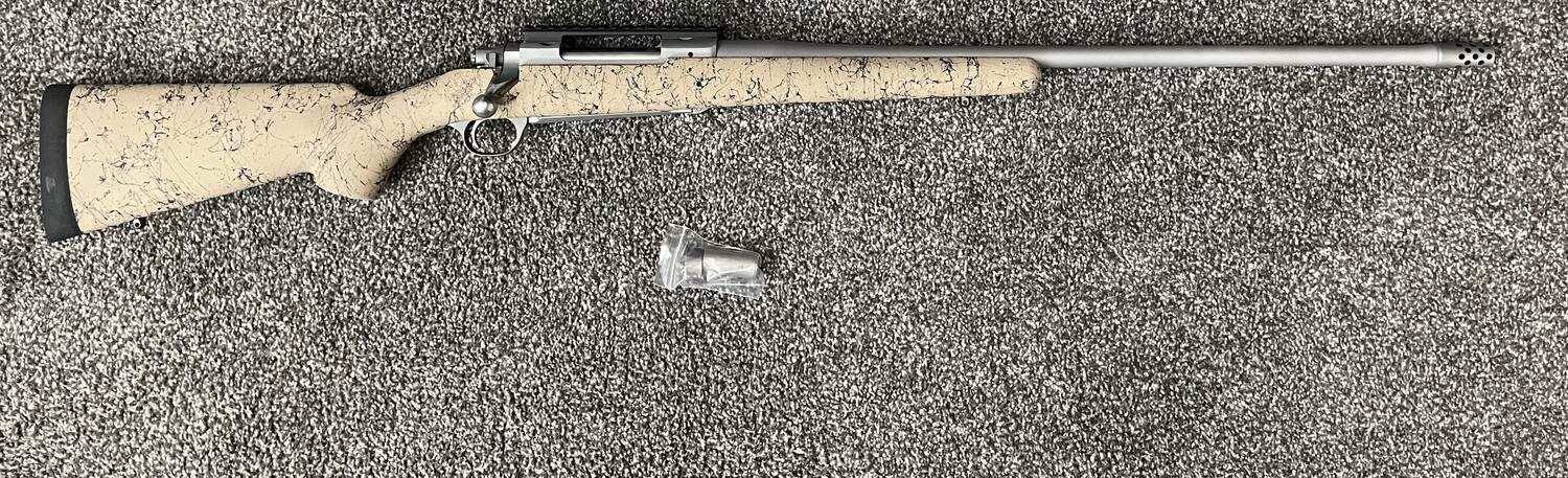 Selling my Ruger Hawkeye FTW Hunter Bolt Action Rifle 7mm PRC 24" Stainless Threaded Barrel Stainless Frame Tan/Black Field Stock. Brand new, never fired. Text usually is best because of my work. Features Non-rotating, Mauser-type controlled round feed extractor is among the most positive case extraction systems ever invented, and features a fixed blade-type ejector that positively ejects empty cases as the bolt is moved fully rearward. Hinged, solid-steel floorplate for easy unloading without having to chamber each cartridge. Features an engraved FTW Hunter logo and patented latch that is flush with the trigger guard to avoid accidental dumping of cartridges. 20 MOA Picatinny rail secured with four, #8-40 screws for increased long-range elevation capabilities overtop the traditional integral scope mounts that are machined directly on the solid-steel receiver. Three-position safety is easily accessible and allows the shooter to lock the bolt or to load and unload the rifle with the safety engaged. Pro-Series H-S Precision tan-black speckled synthetic stock features a full-length aluminum bedding block and slender pistol grip with Pro-Center technology. The LC6 trigger features smooth, crisp performance right out of the box for increased accuracy on the range or in the field. Cold hammer-forged barrel results in ultra-precise rifling that provides exceptional accuracy and longevity. Rugged, one-piece, stainless steel bolt. The Ruger Muzzle Brake System includes a removable, radial-port muzzle brake that significantly reduces felt recoil. For times when the brake is not preferred, it may be replaced by the included dynamically-matched muzzle weight. Switching between the brake and the weight will not change the bullet's point of impact for a particular load. The included thread protector may be used if neither the brake nor the weight is desired. Also includes: studs for mounting sling swivels.