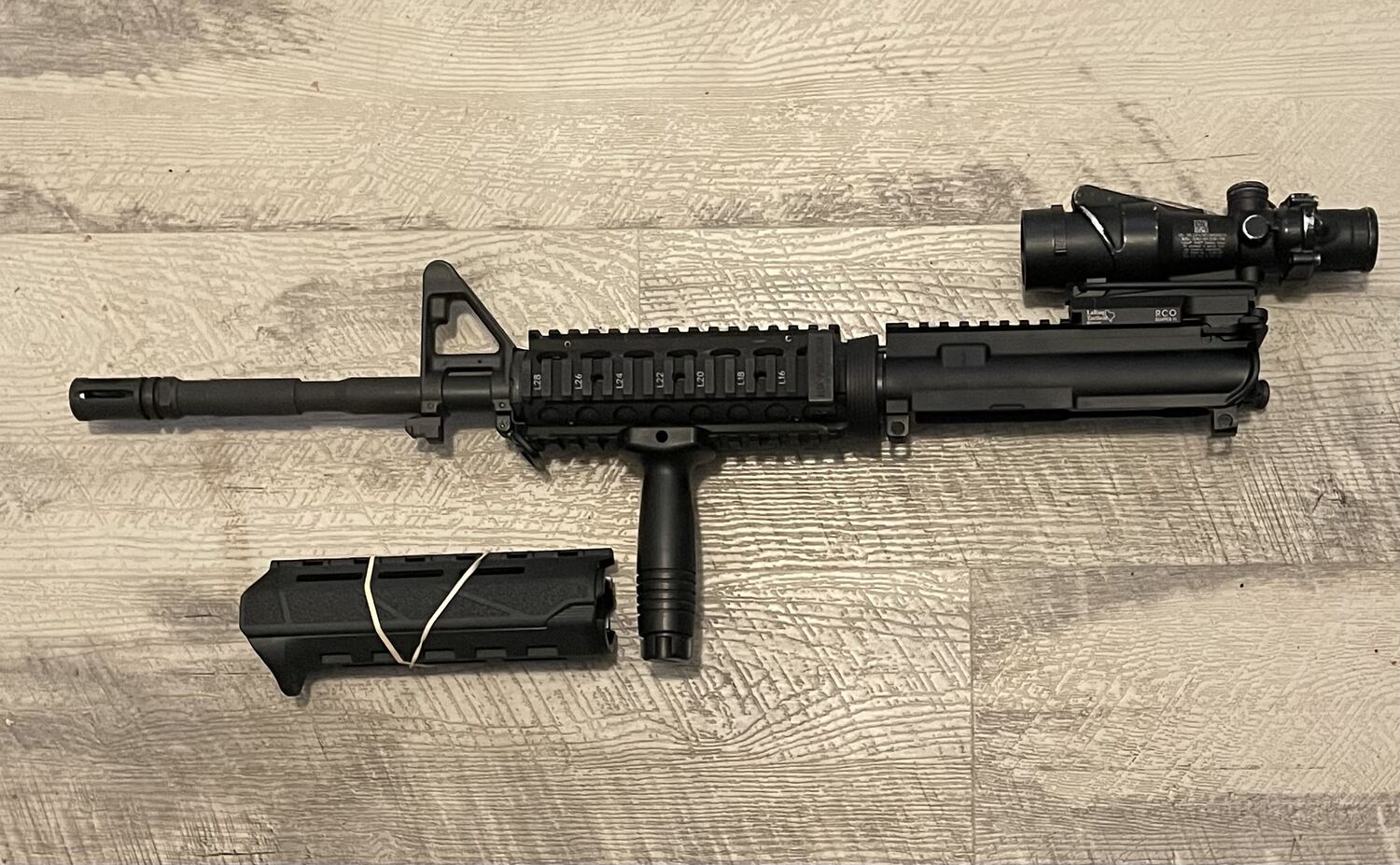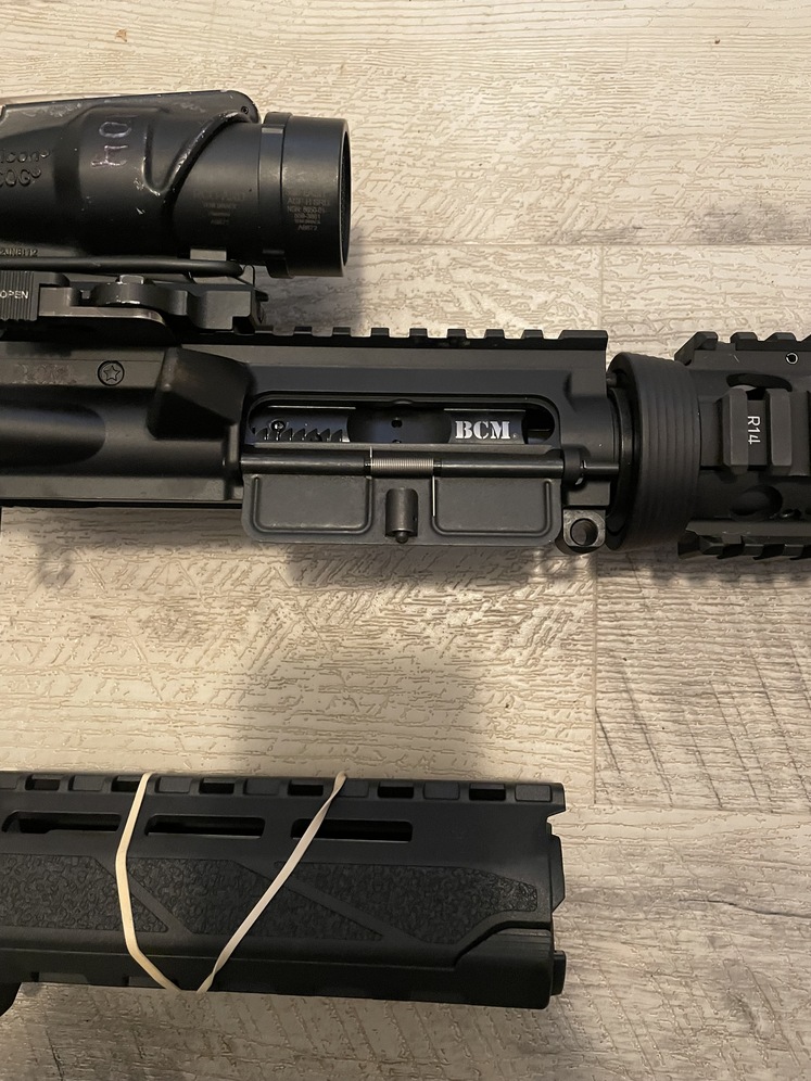 BCM upper 14.5" barrel with a pinned and welded extended BCM A2 for a 16" length. Low use and in like new condition. Will come with the Magpul plastic handguard seen in picture, go charging handle, and BCM bcg (KAC rail included for extra). ACOG not included but can be.