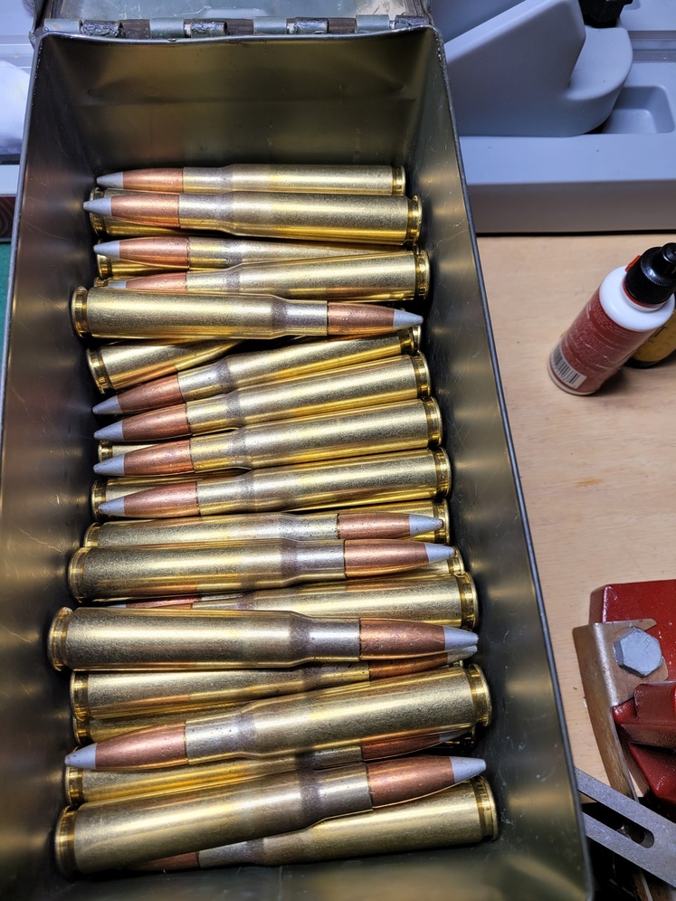 100 rounds 50 BMG Winchester Cartridge Co (Olin) Armor Piercing Incendiary (API). Rounds have not been linked. No link marks. Good luck finding and getting this to Alaska. $6.50 each.