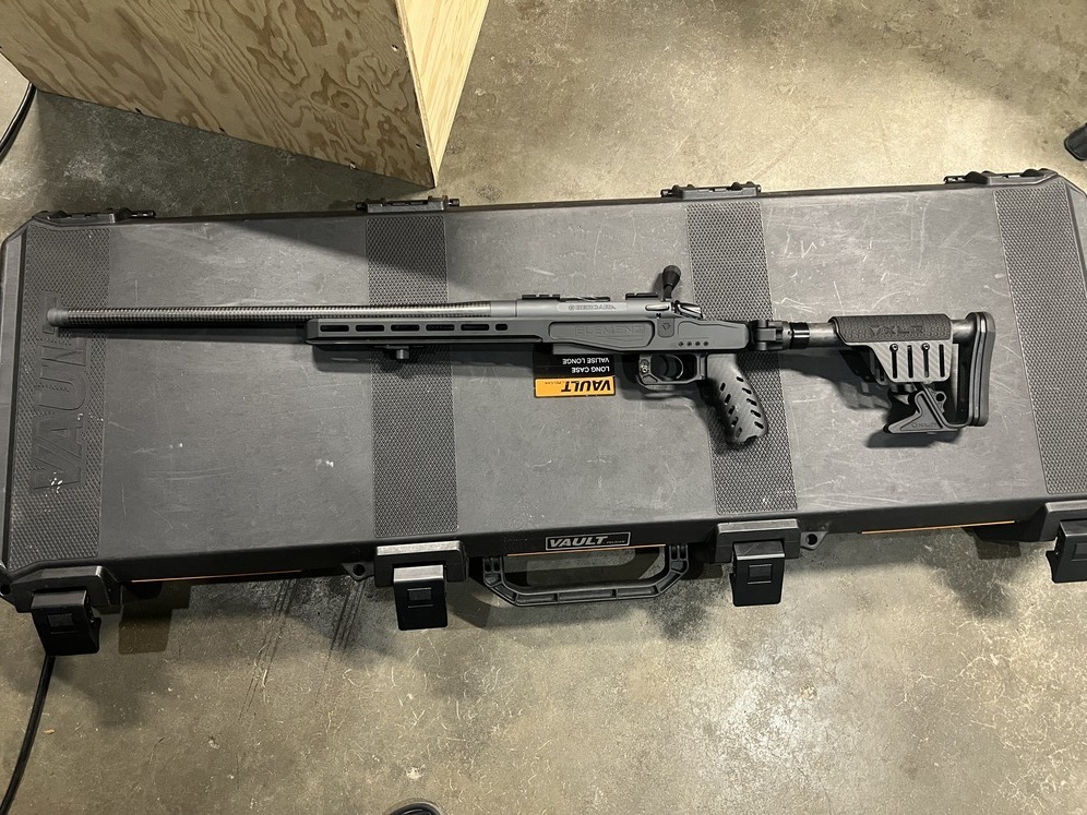 Bergara carbon b14 barreled action dropped in a Xlr folding chassis. Included: Thumb rest, bag rider, 5 round and 3 round magazine, Omni muzzle brake, Warne scope bases. 450 rounds down the 22” carbon barrel. Sub MOA with Hornady 175eldx and 180eldm.