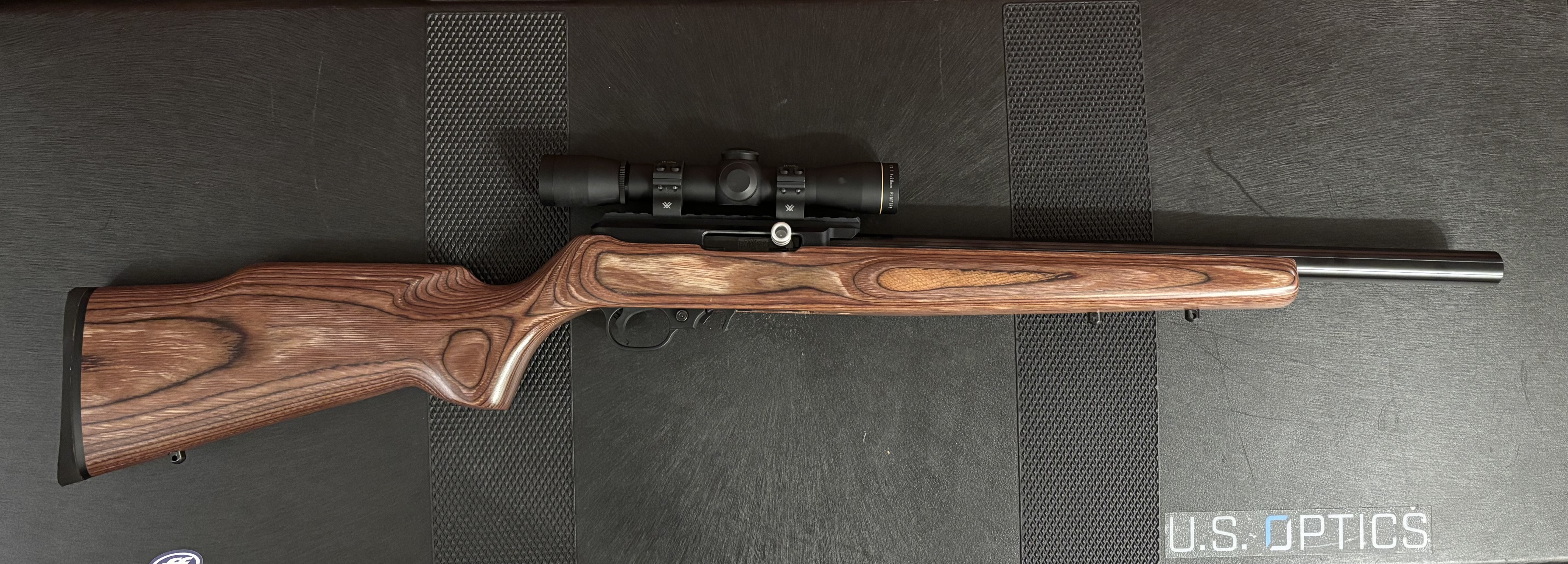 Faxon receiver and bolt Heavy varmit barrel Nice wood stock Leopold 4x