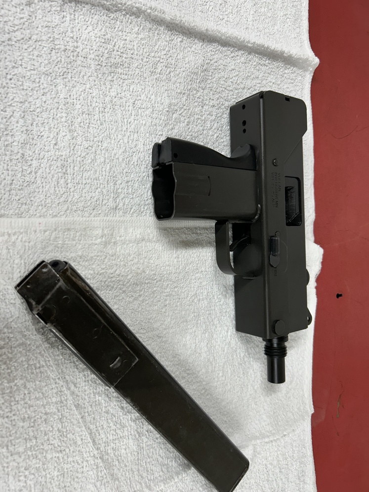 Vulcan model V10-45 pistol. Mac 10 style. Shoots 45acp. Comes with a large clip and carrying case . Very nice shape.