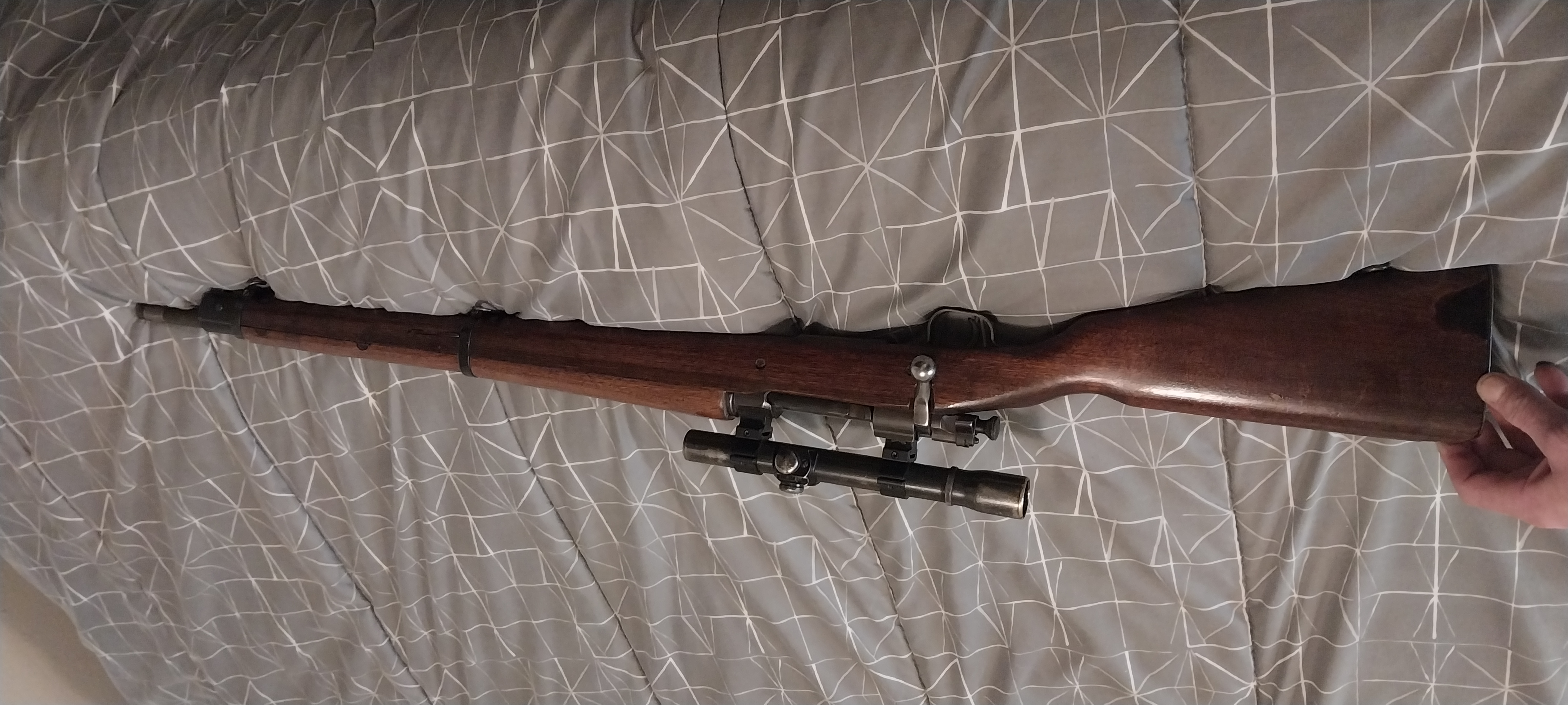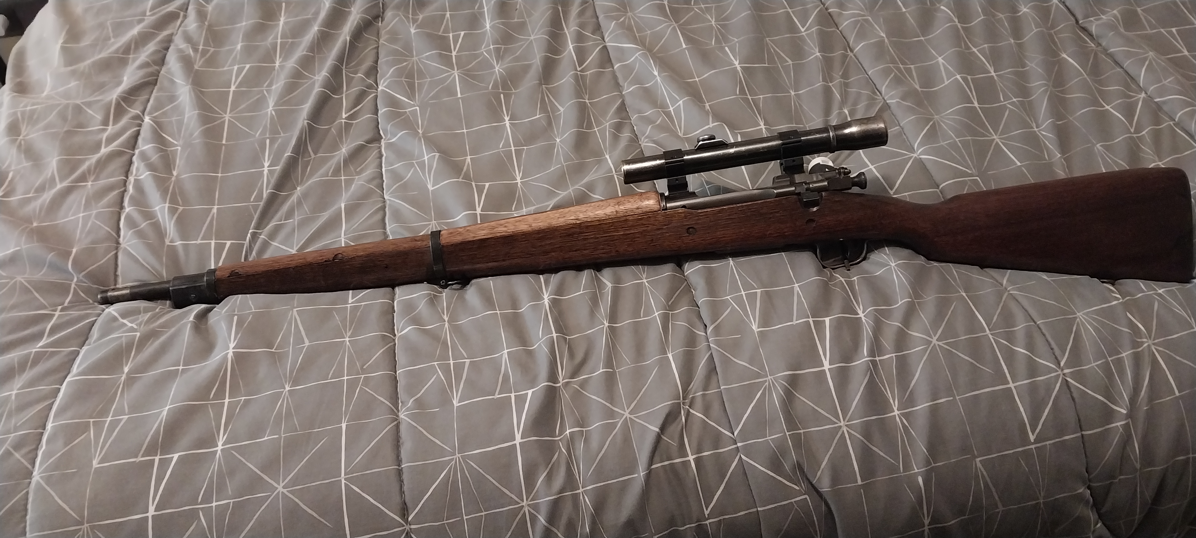 1903a3 remington barrel stamp 9-43 RA with flaming bomb.serial num starting with 39xxxxx ..weaver 2.5 power scope post retical. Beautiful wood full military stock $1,000 OBO