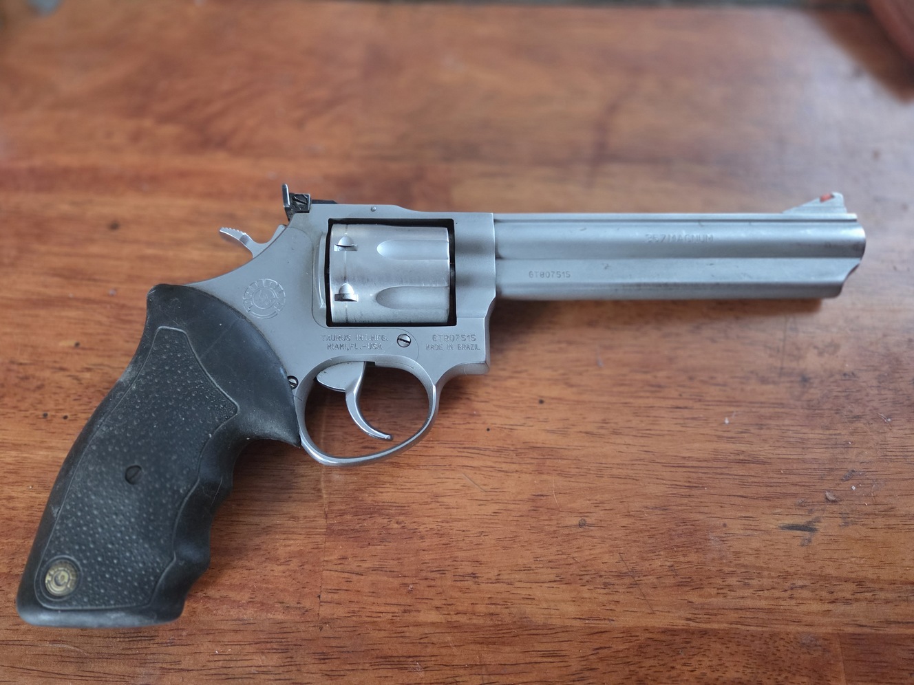Soft grip and barrel length makes an easy firing revolver. Ised rarely and kept clean.