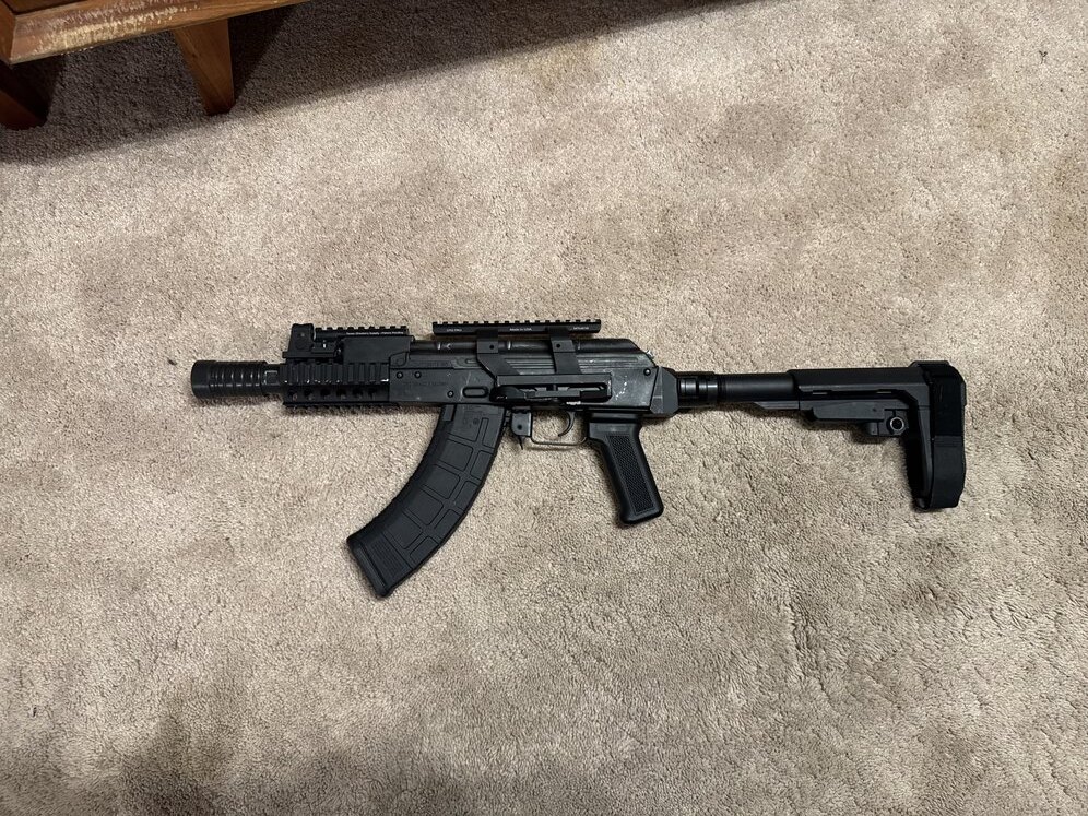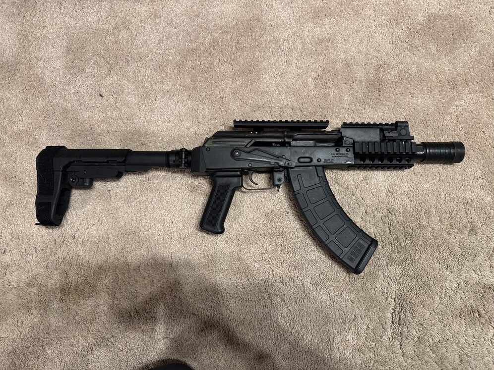 Custom Romarm/Cugir Romanian Micro Draco . Comes with 1 mag, all the rails, flash guard/muzzle brake and folding brace. It shoots great