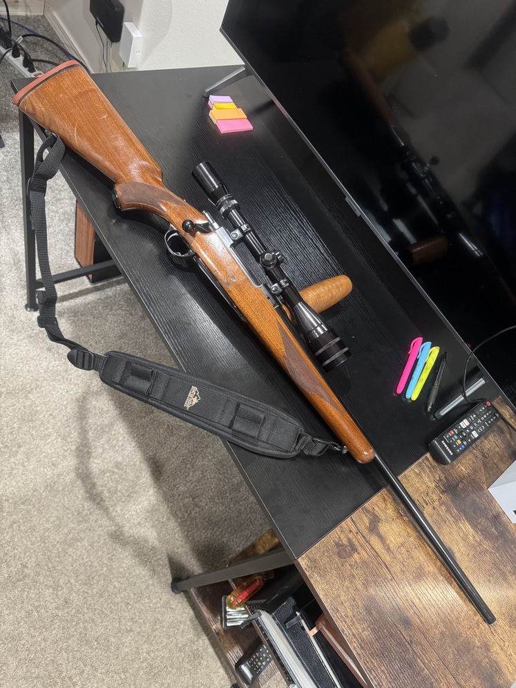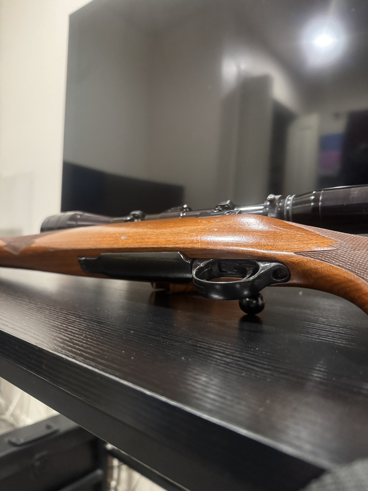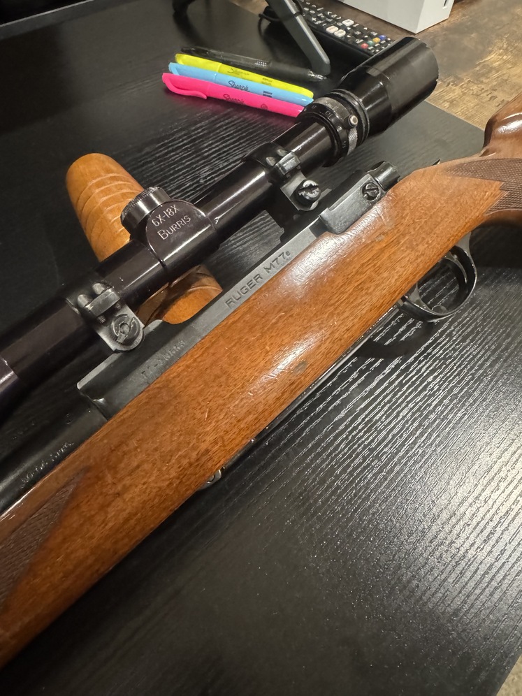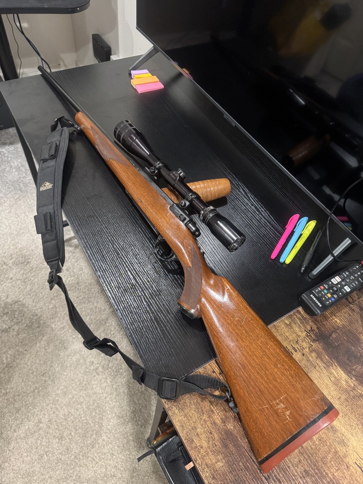Vintage Ruger M77 chambered in the legendary .30-06 Springfield cartridge. 22” barrel, 5+1 capacity, it’s stamped December 10, 1967 for manufacturing date it’s in beautiful condition, just completely stripped it, cleaned, and reassembled it and it’s in perfect working order. Vintage Burris 6x18 scope just sighted it in at 100 yards w/150g FMJ’s. It’s a tack driver. Comes with Sling and scope and a hard case. $850 obo, I’ll trade for a Remington 700 chambered in .30-06 or Winchester model 70 chambered in .30-06 or Glocks or Sig Sauer pistols or AR’s/AK’s text is best for a meet up or more pictures.