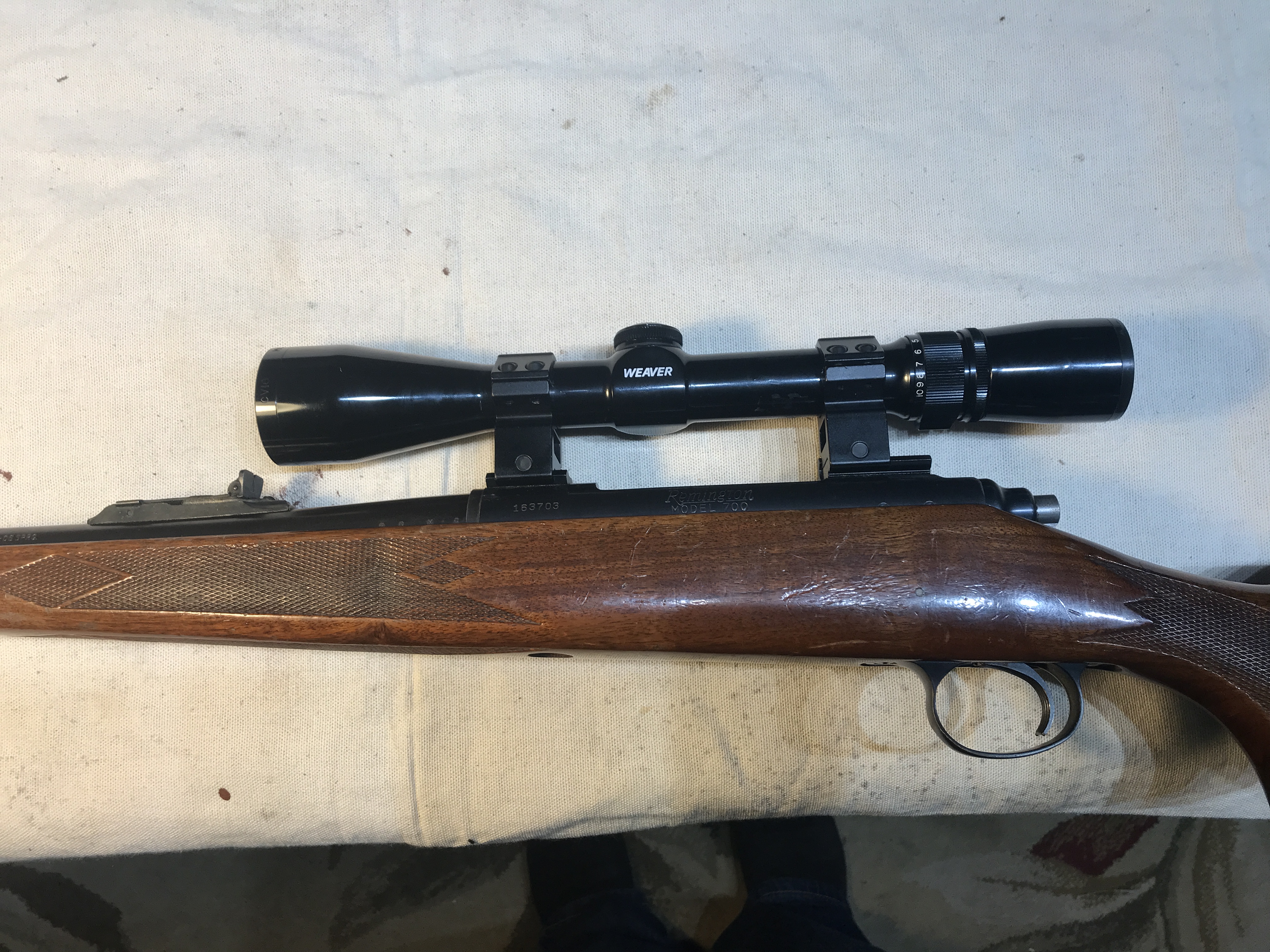 Remington 700, 30-06. Holds 5 rounds (4+1). Has a Weaver 2-10 zoom scope. Comes with 2 boxes of Herter's 180gr bullets, also 2 boxes of Remington 180gr bullets.