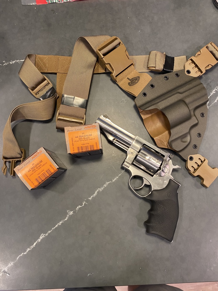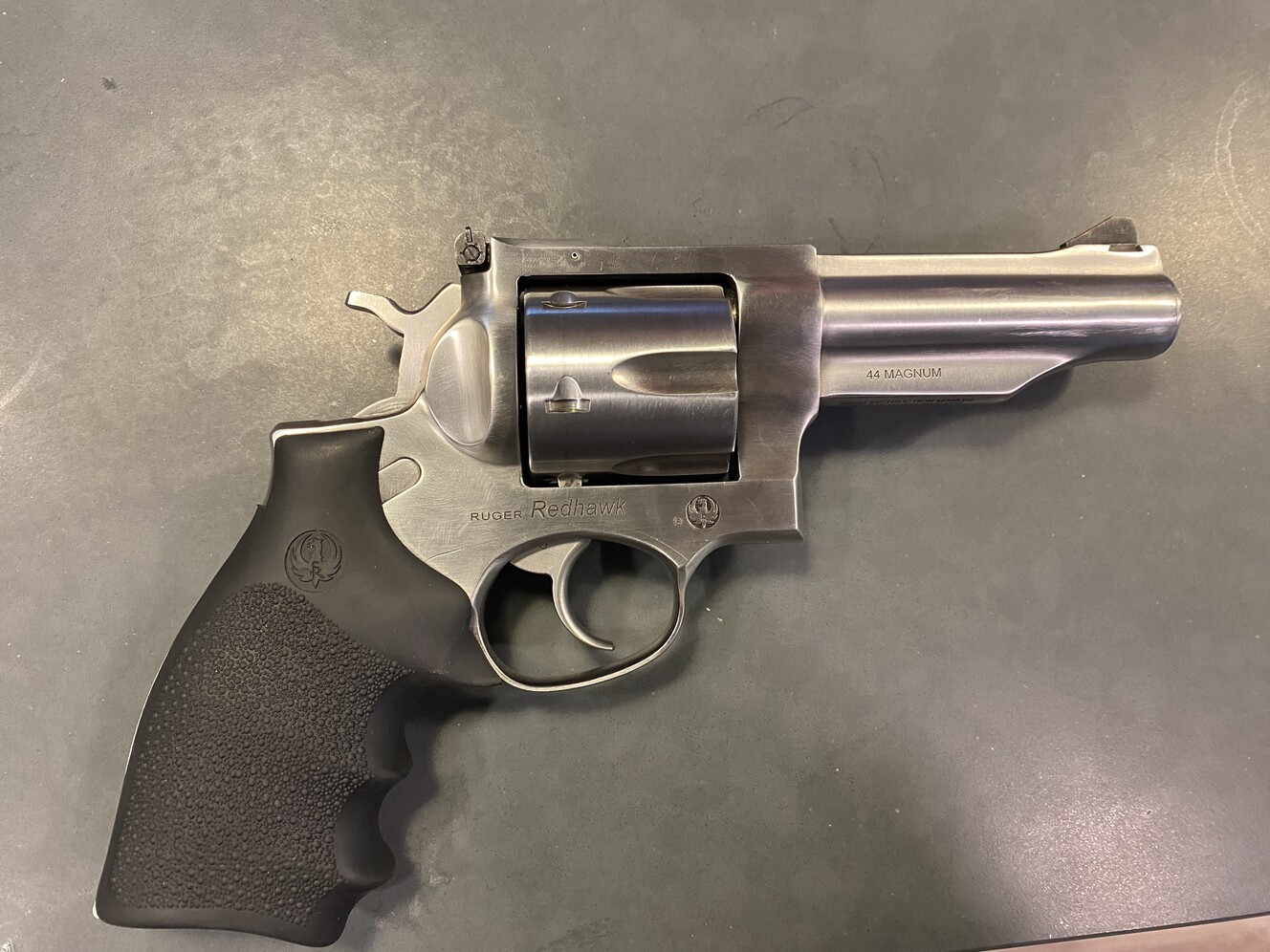 Ruger RedHawk .44 mag 4 inch. Gun is in excellent shape and comes with gunfighter Inc chest holster. Also comes with several boxes of 305gr hard cast loads. This gun will handle the hottest loads out there. $1000 obo no trades thanks.